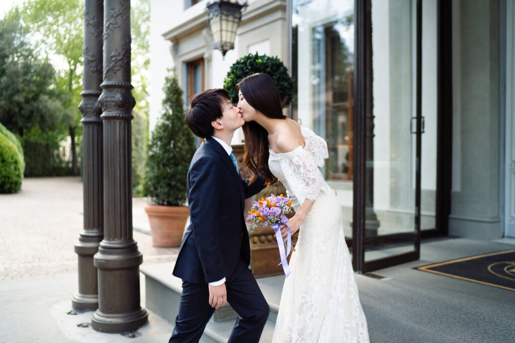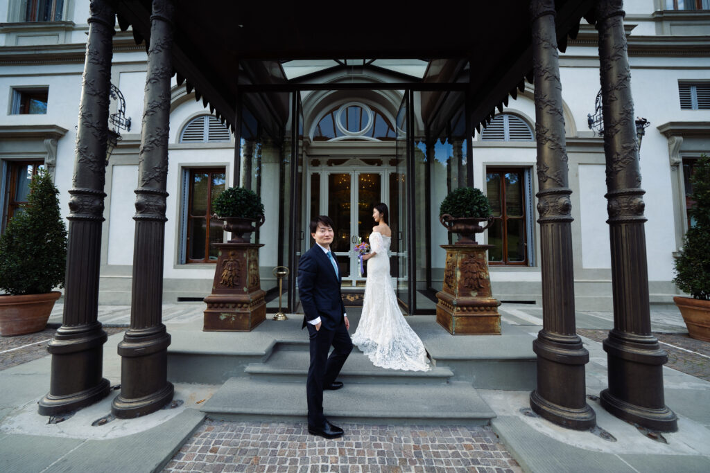 In the heart of Florence, Villa Cora offered Reina and Shota the perfect setting for their intimate elopement, a place where historic elegance meets a quiet, almost cinematic atmosphere.