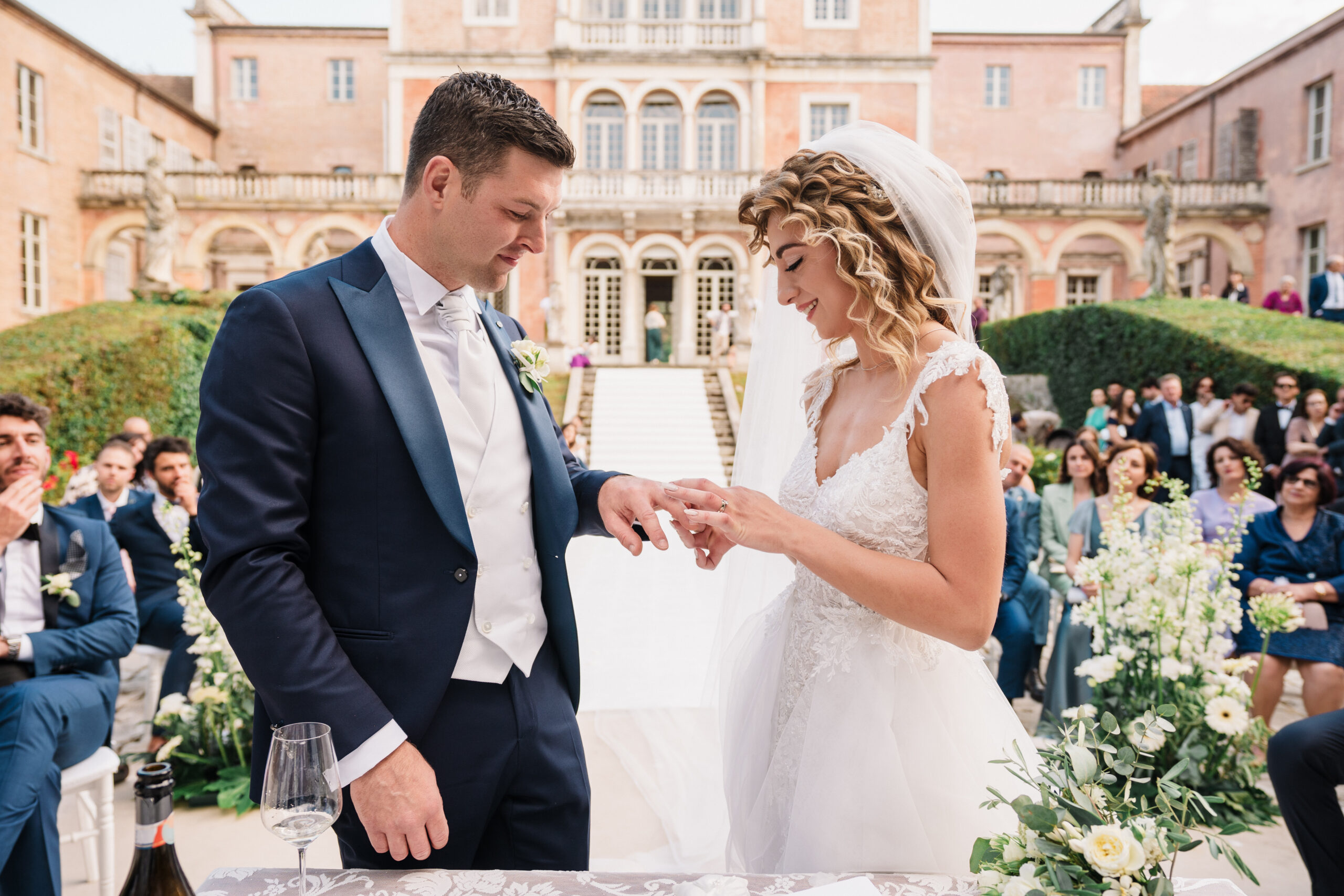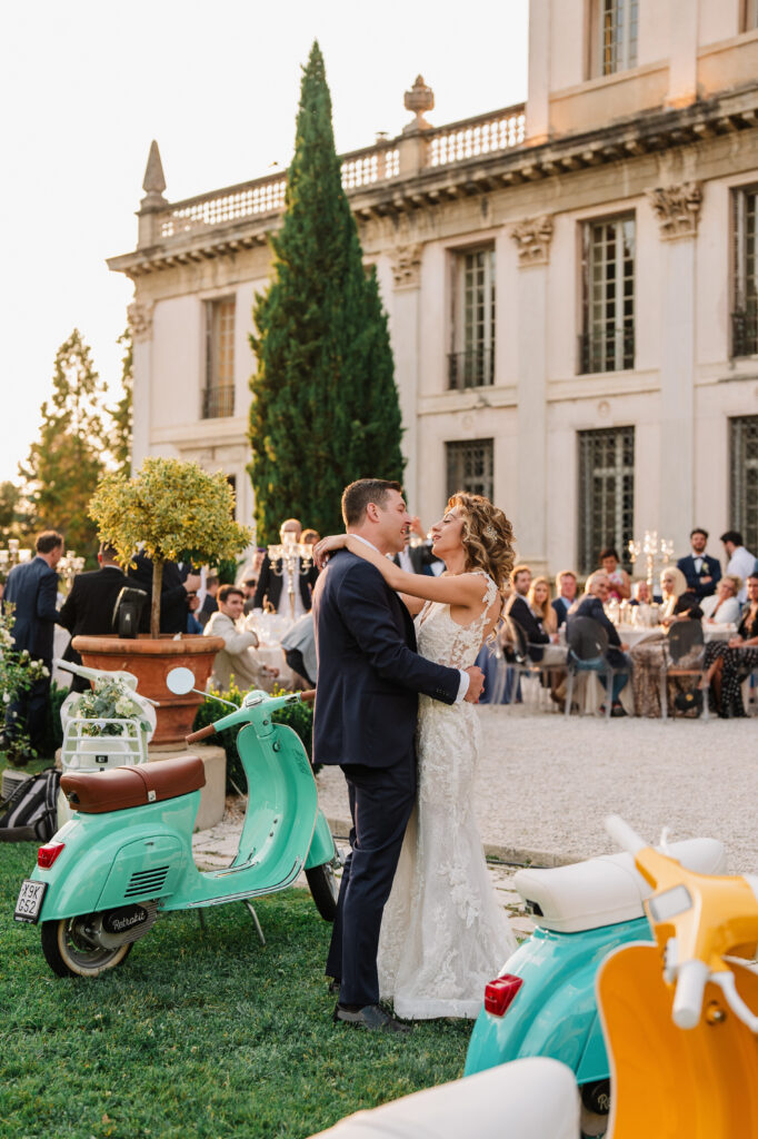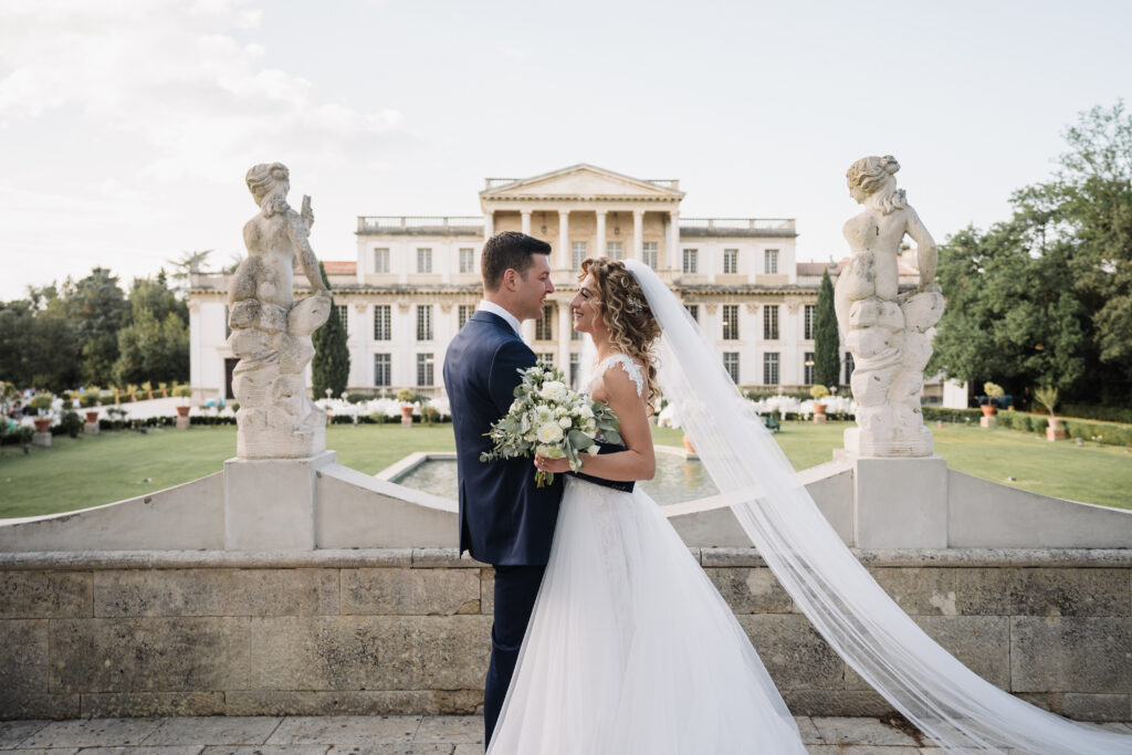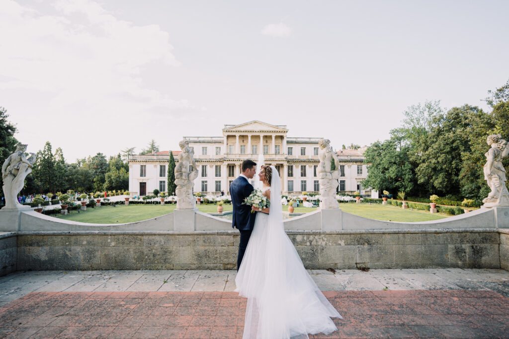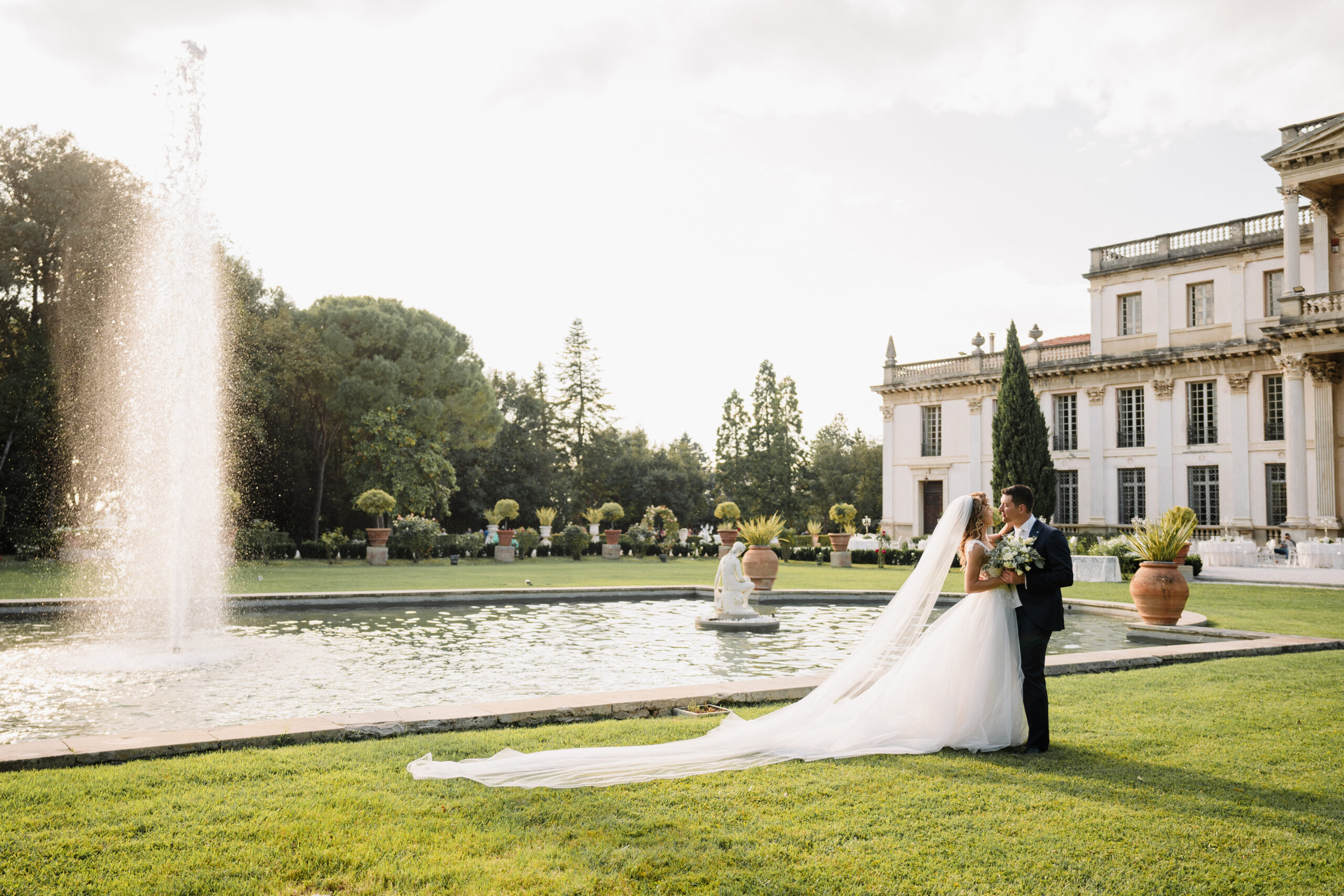 Sara and Alex celebrated their elegant wedding at Villa Des Vergers, a historic Italian villa surrounded by beautiful gardens and classical architecture.