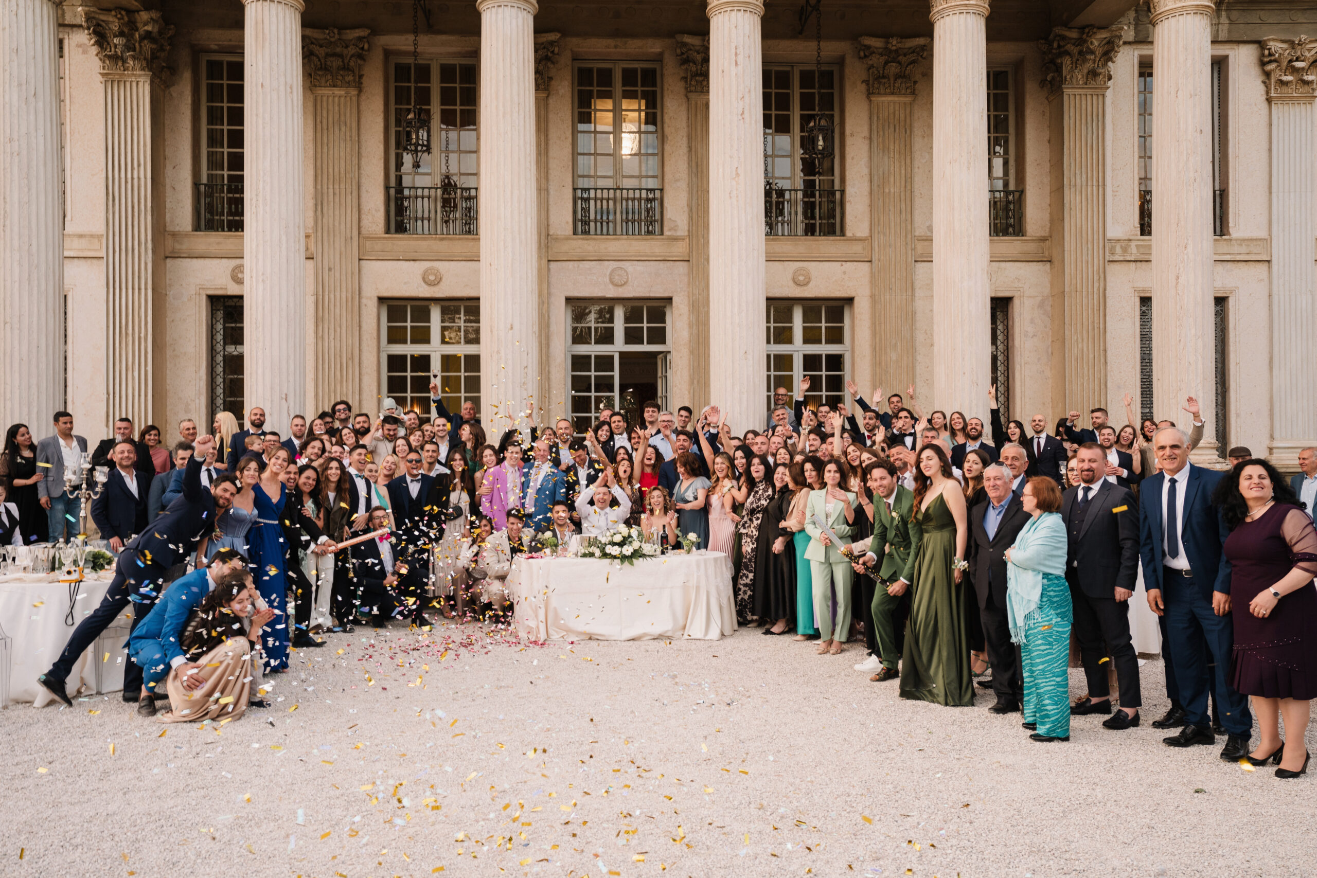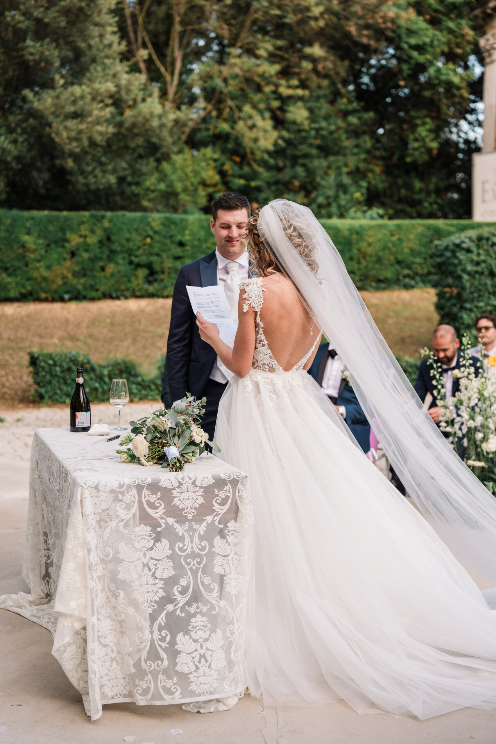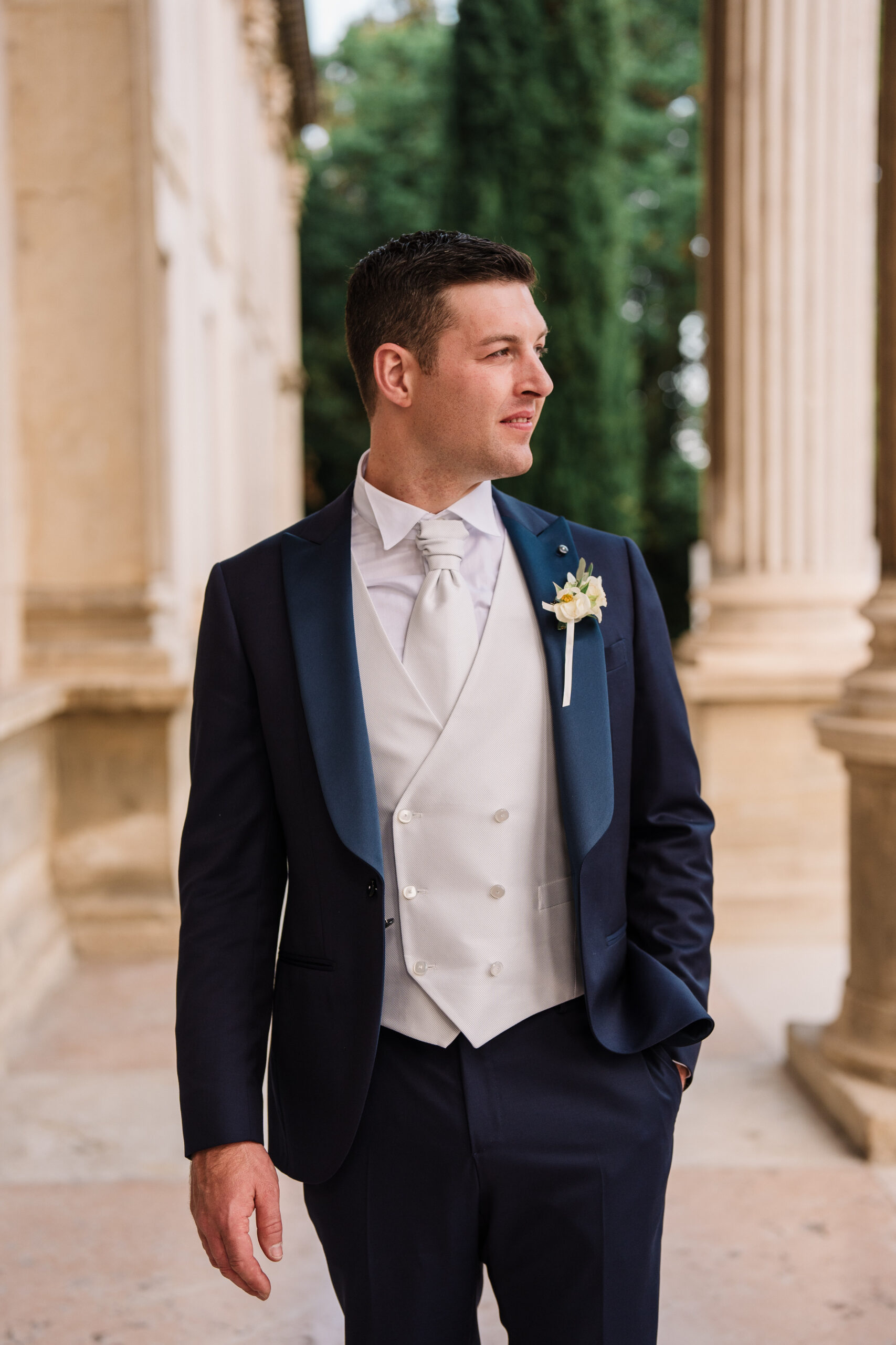 Sara and Alex celebrated their elegant wedding at Villa Des Vergers, a historic Italian villa surrounded by beautiful gardens and classical architecture.