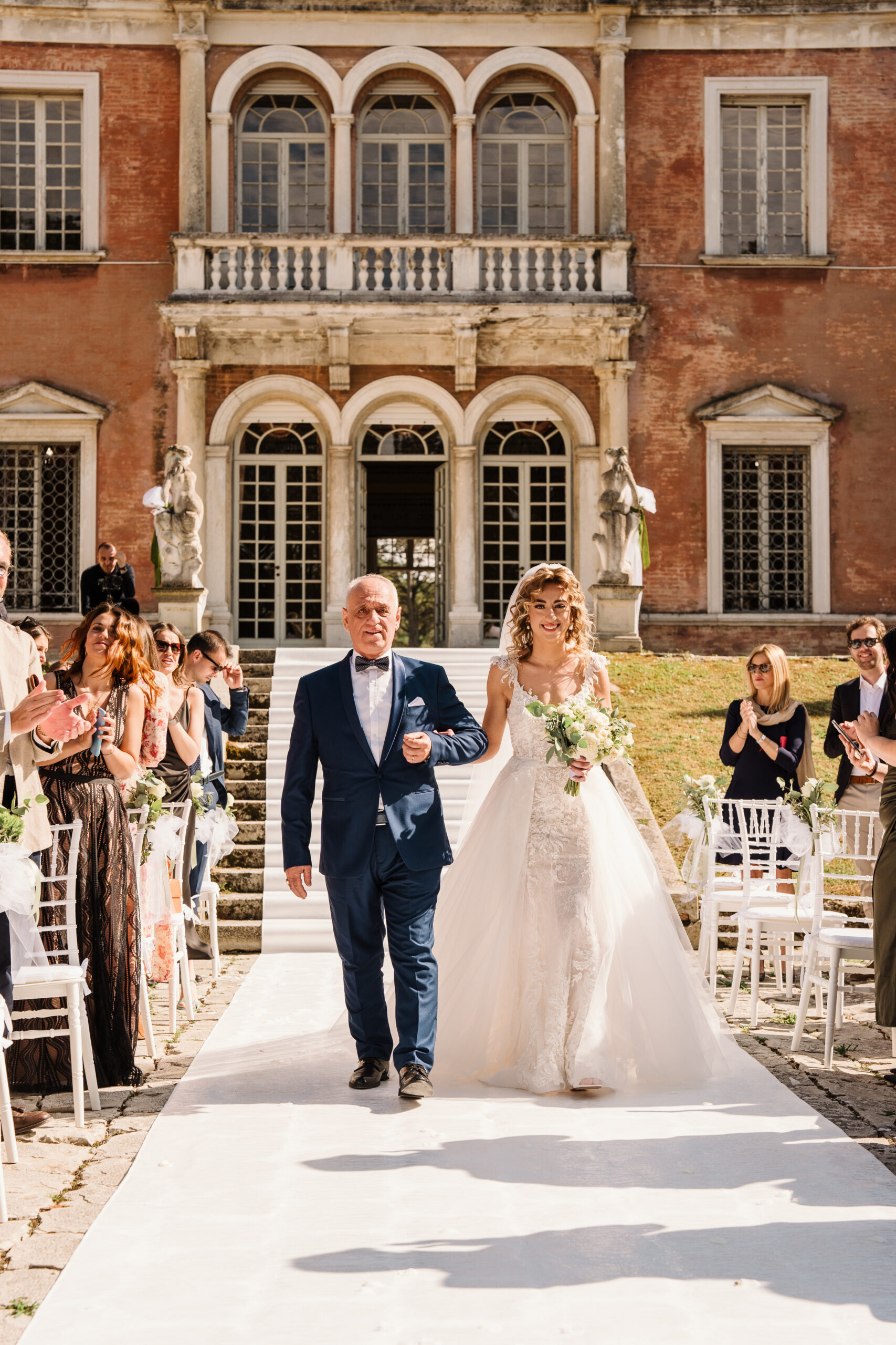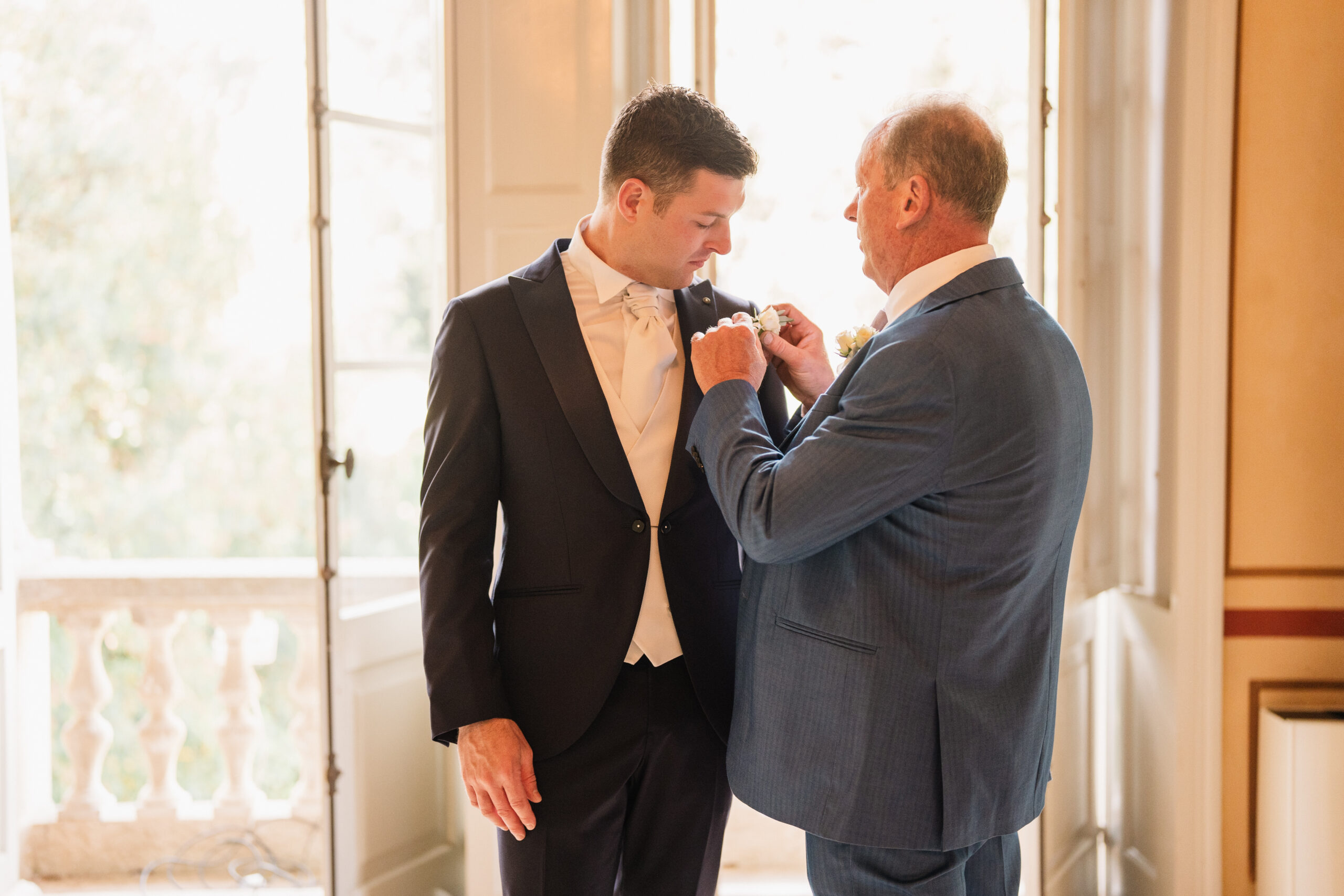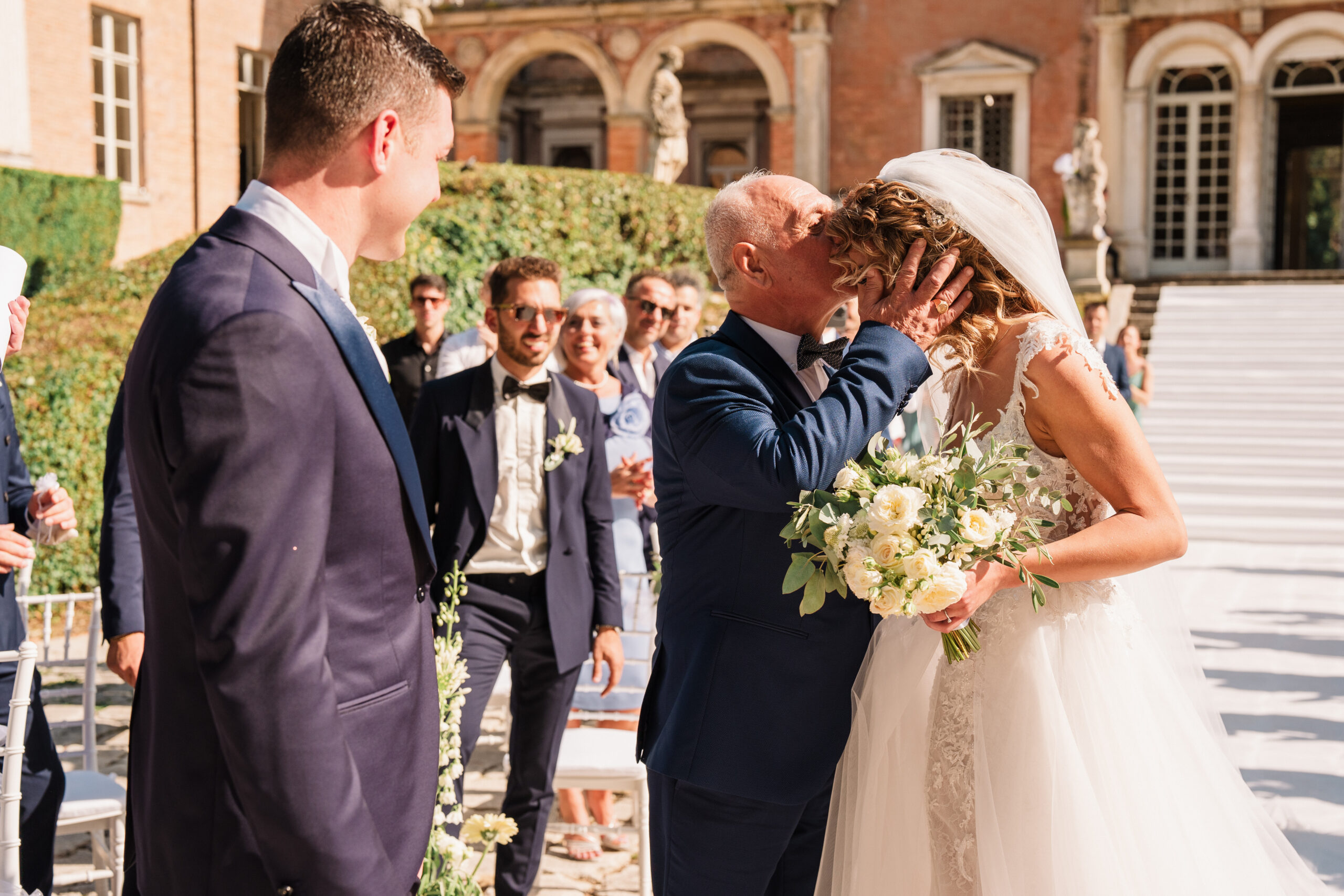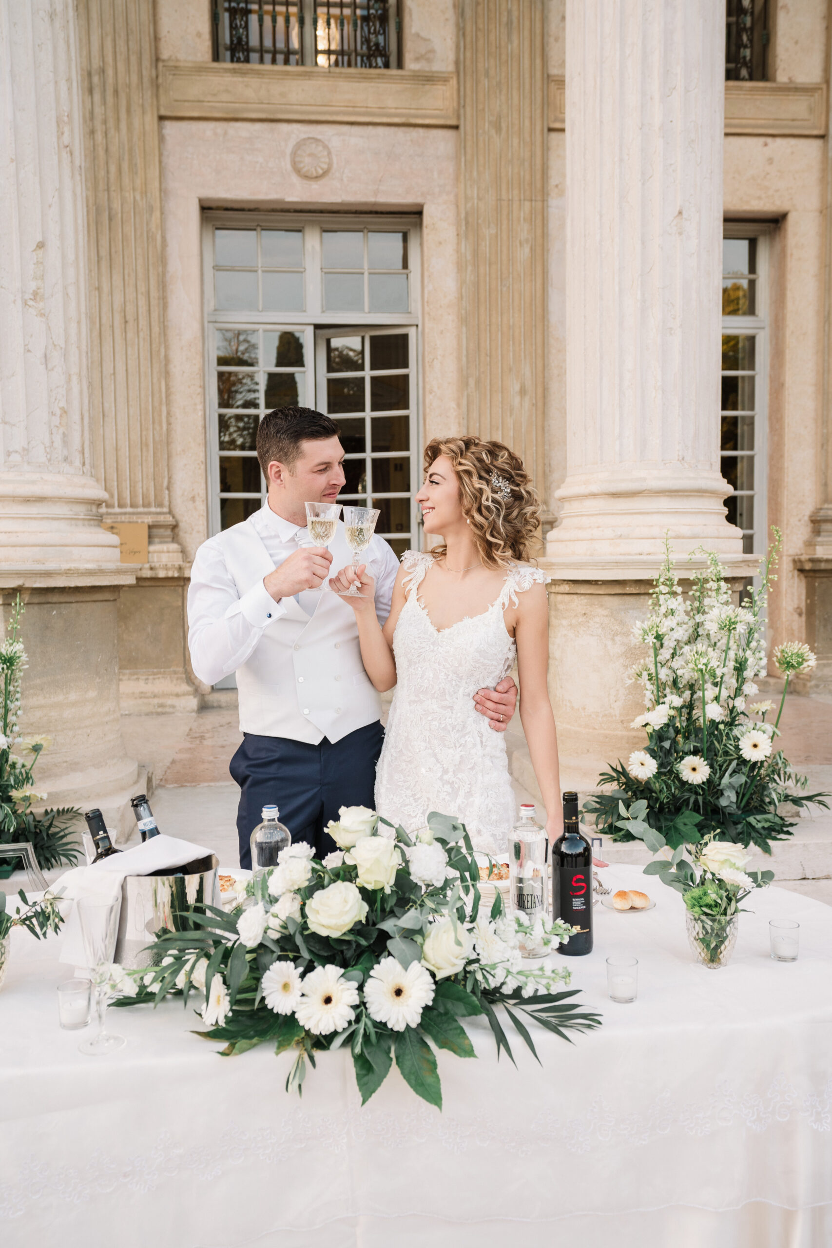 Sara and Alex celebrated their elegant wedding at Villa Des Vergers, a historic Italian villa surrounded by beautiful gardens and classical architecture.
