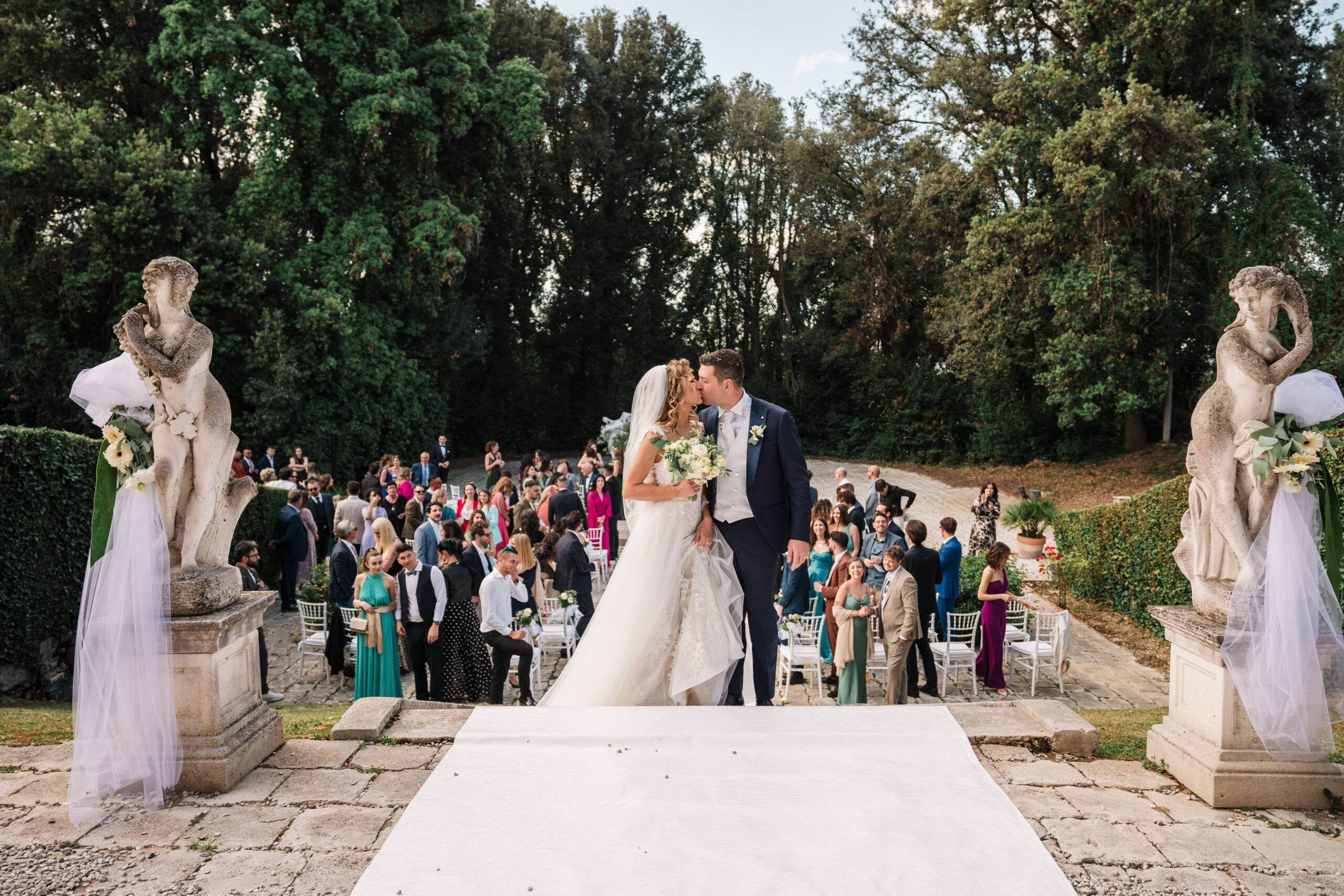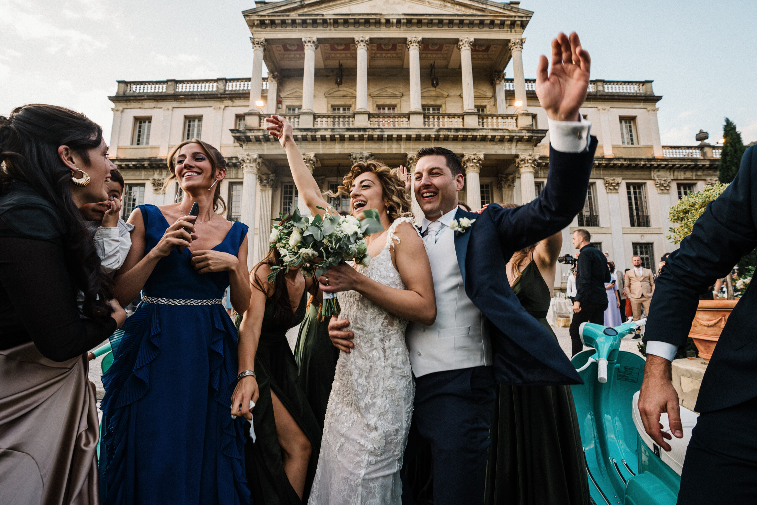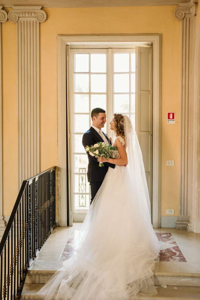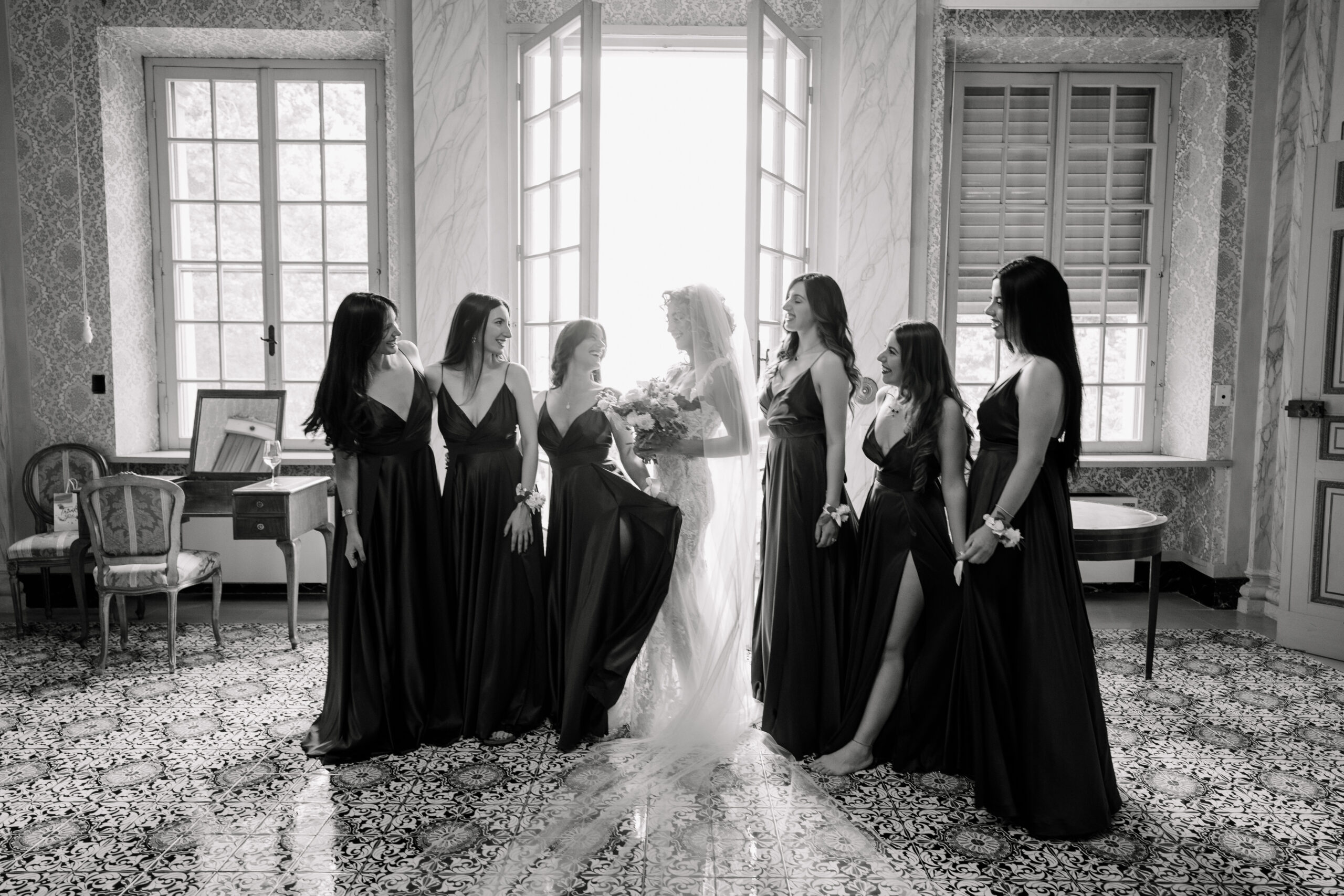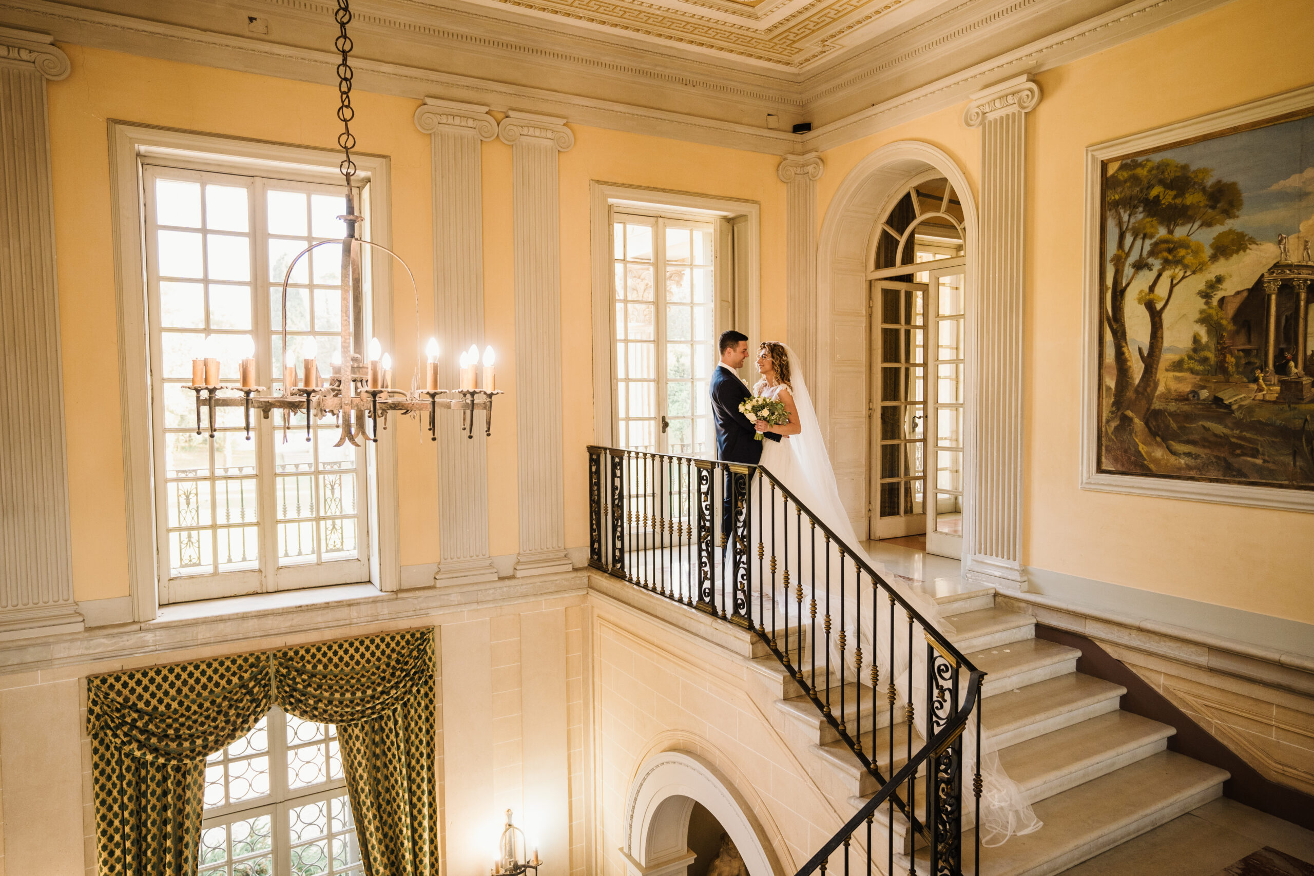 After the “I do”, guests enjoyed cocktails in the gardens while Sara and Alex explored the villa for their portraits. The architecture, the statues, and the elegant terraces created a timeless atmosphere for their wedding photographs.