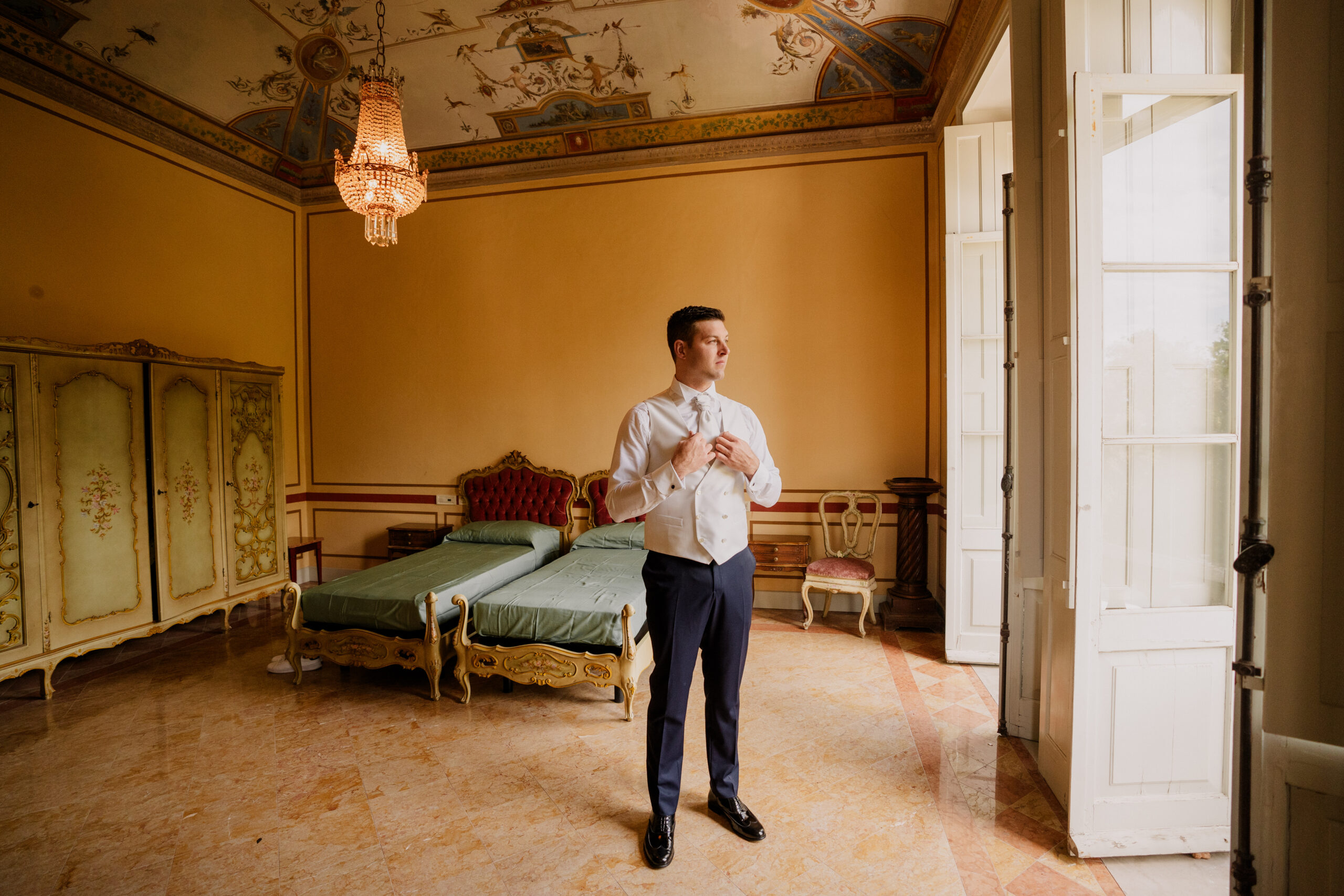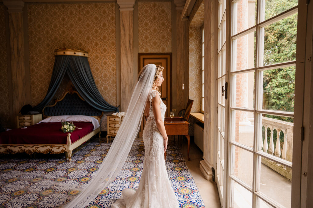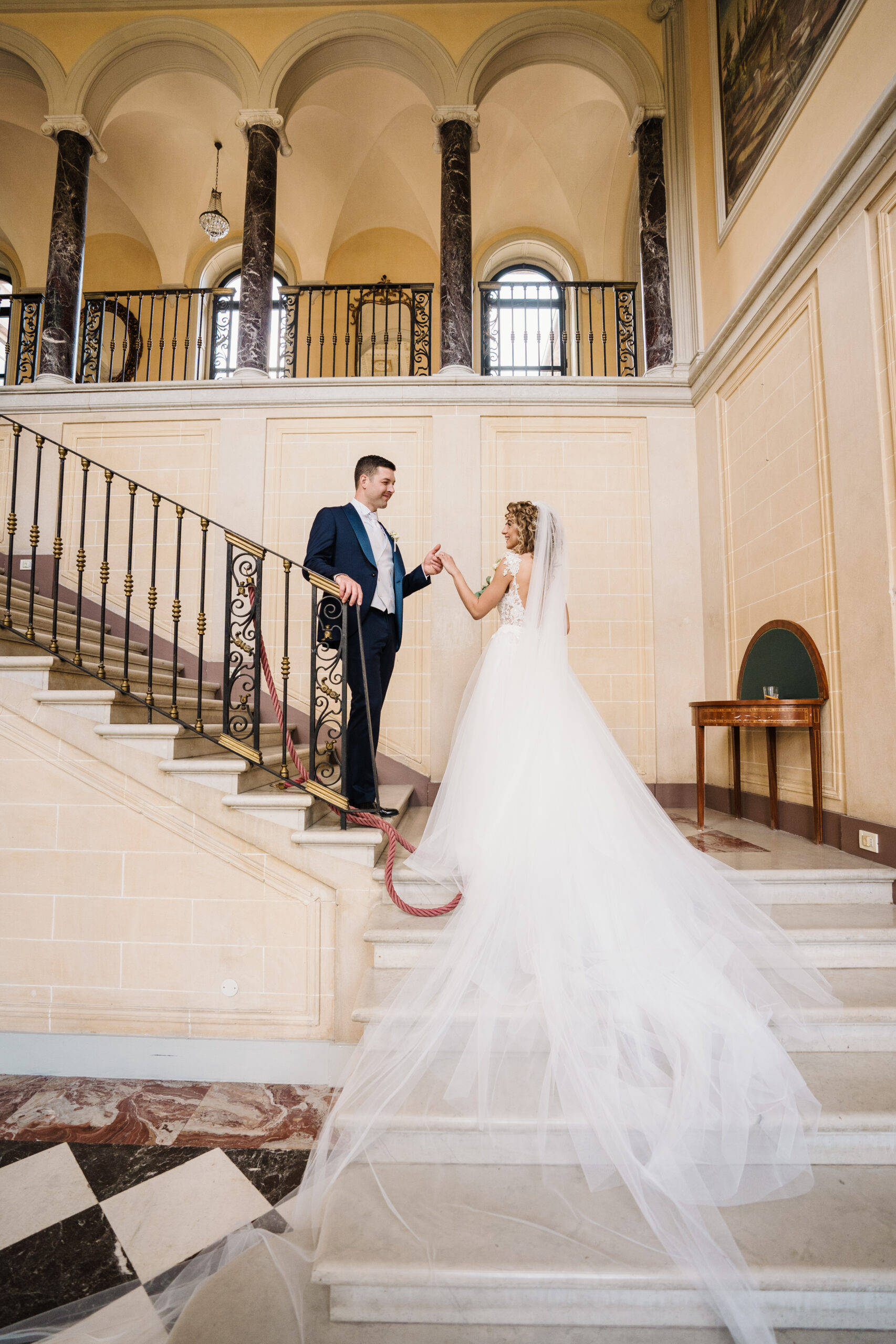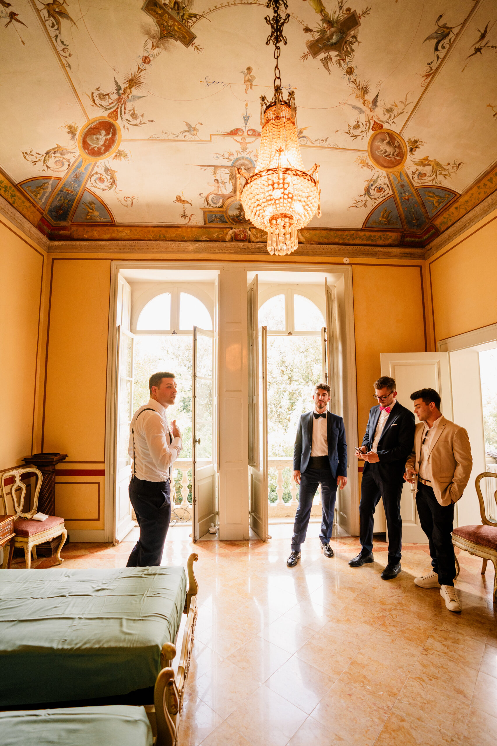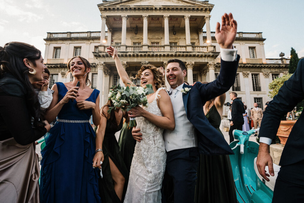 After the “I do”, guests enjoyed cocktails in the gardens while Sara and Alex explored the villa for their portraits. The architecture, the statues, and the elegant terraces created a timeless atmosphere for their wedding photographs.