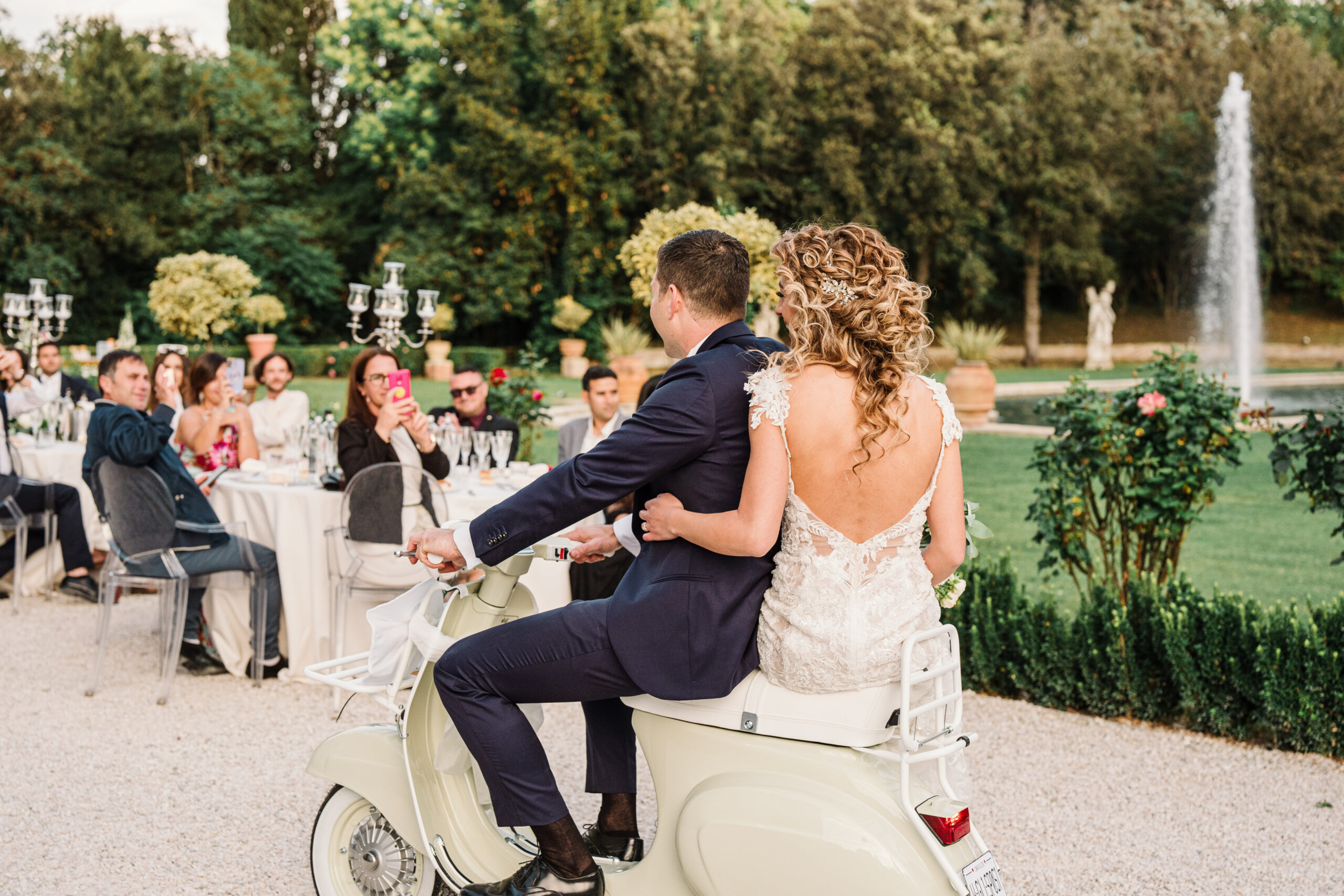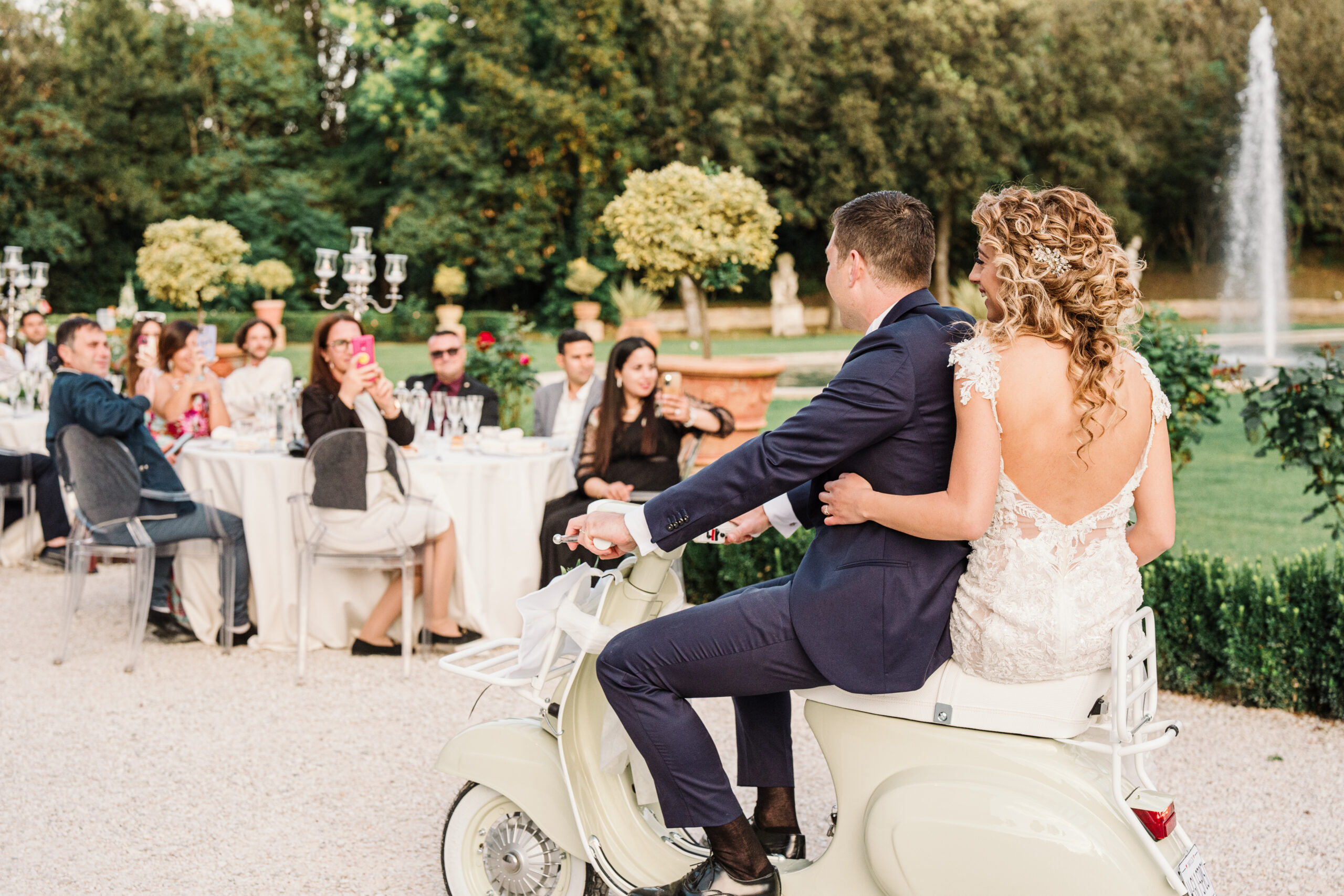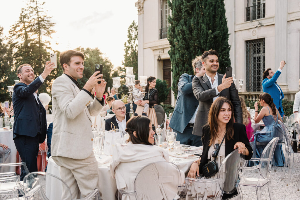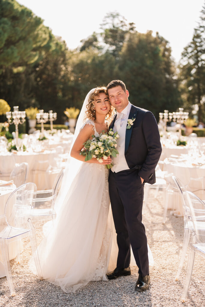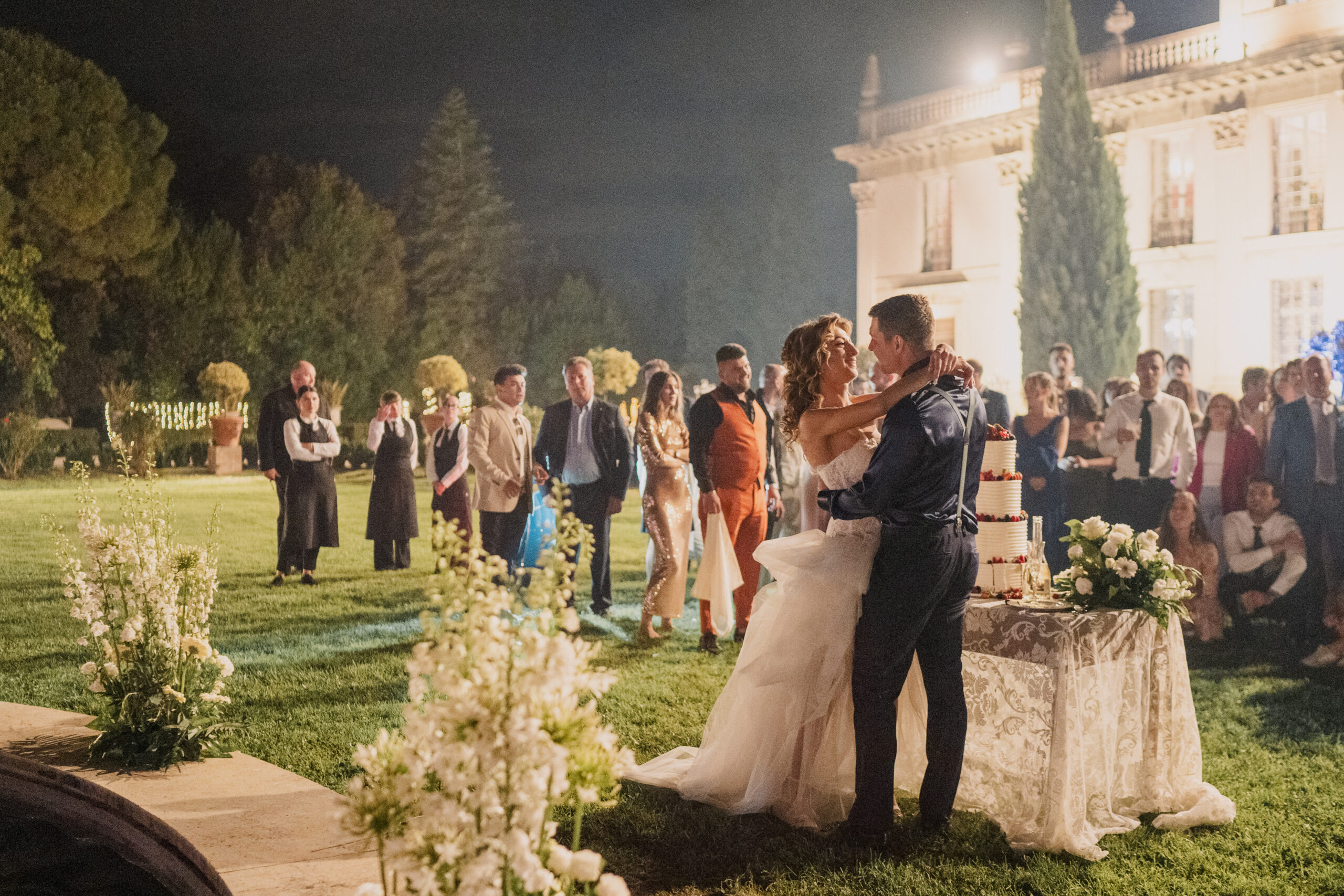As the evening arrived, the celebration continued with dinner, speeches, and dancing under the lights of the villa — creating an unforgettable Italian wedding experience.