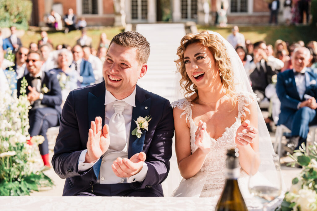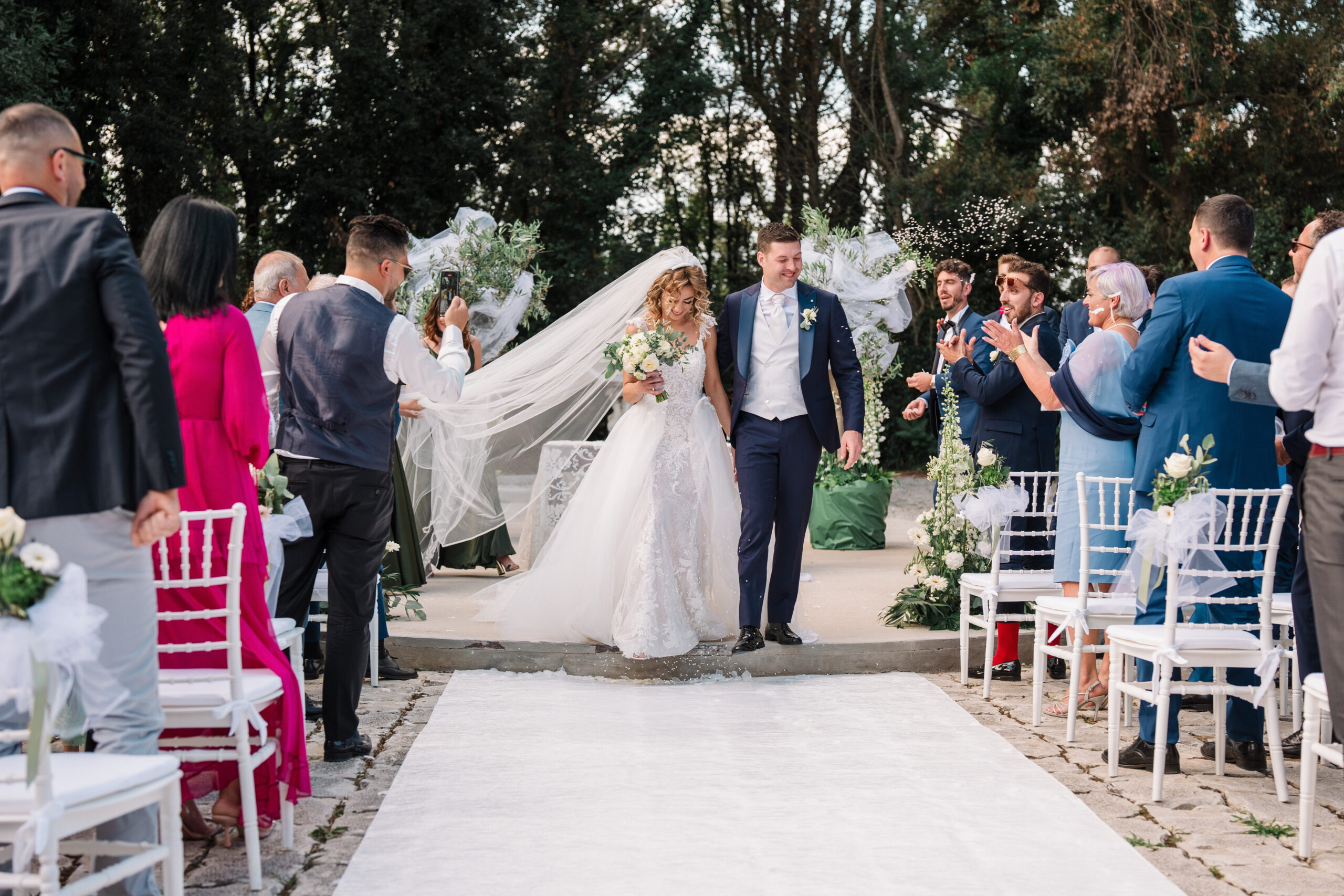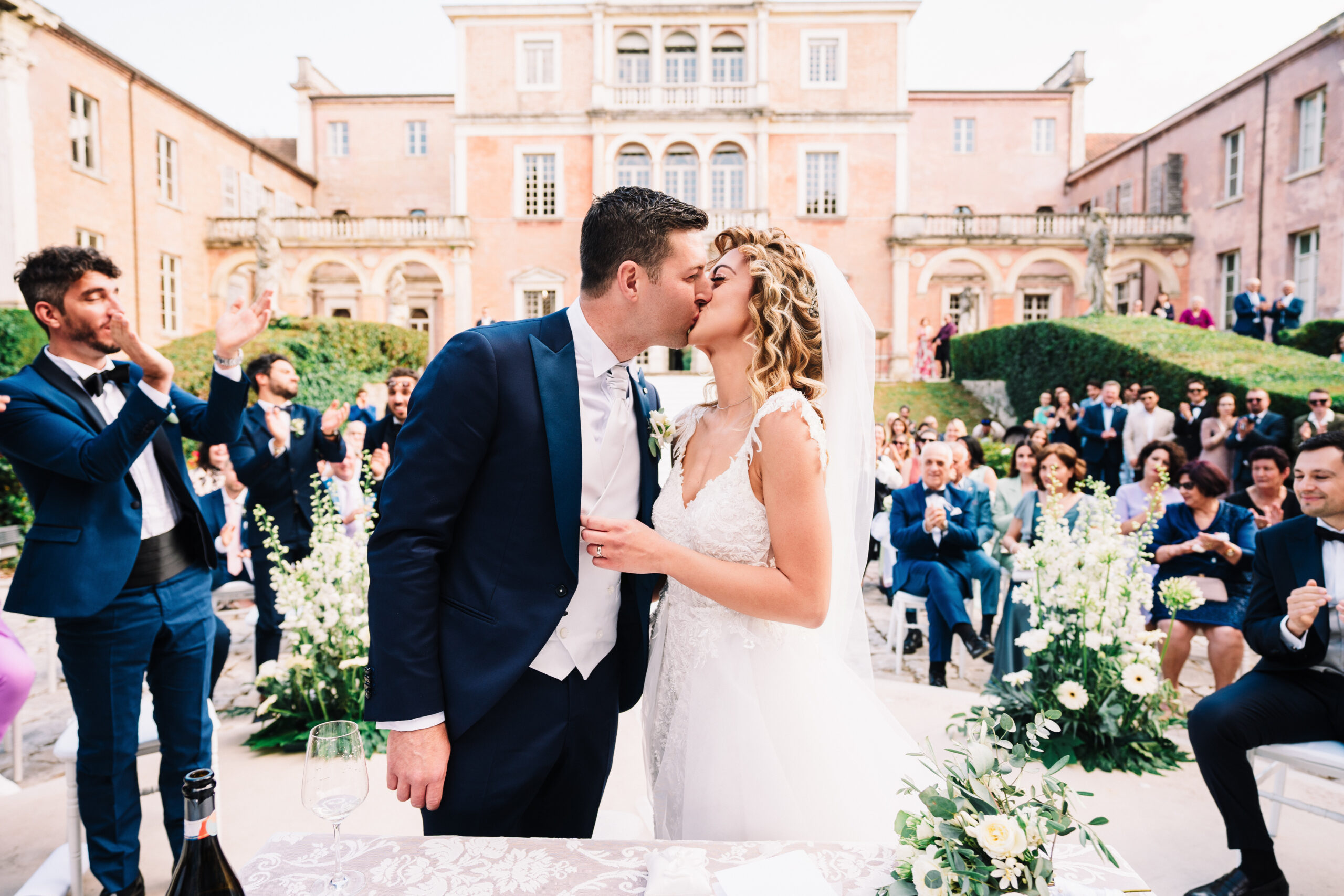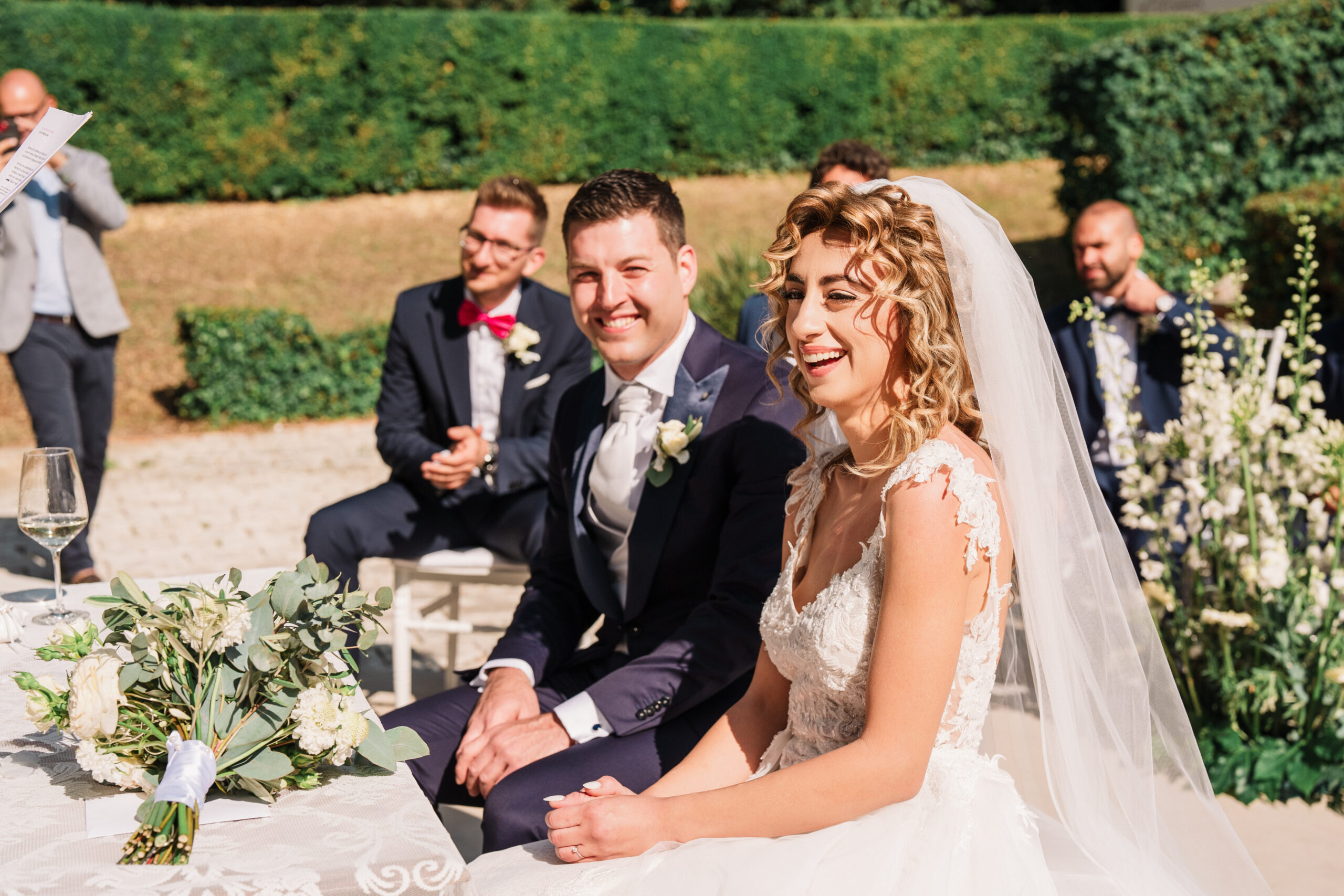 As the evening arrived, the celebration continued with dinner, speeches, and dancing under the lights of the villa — creating an unforgettable Italian wedding experience.