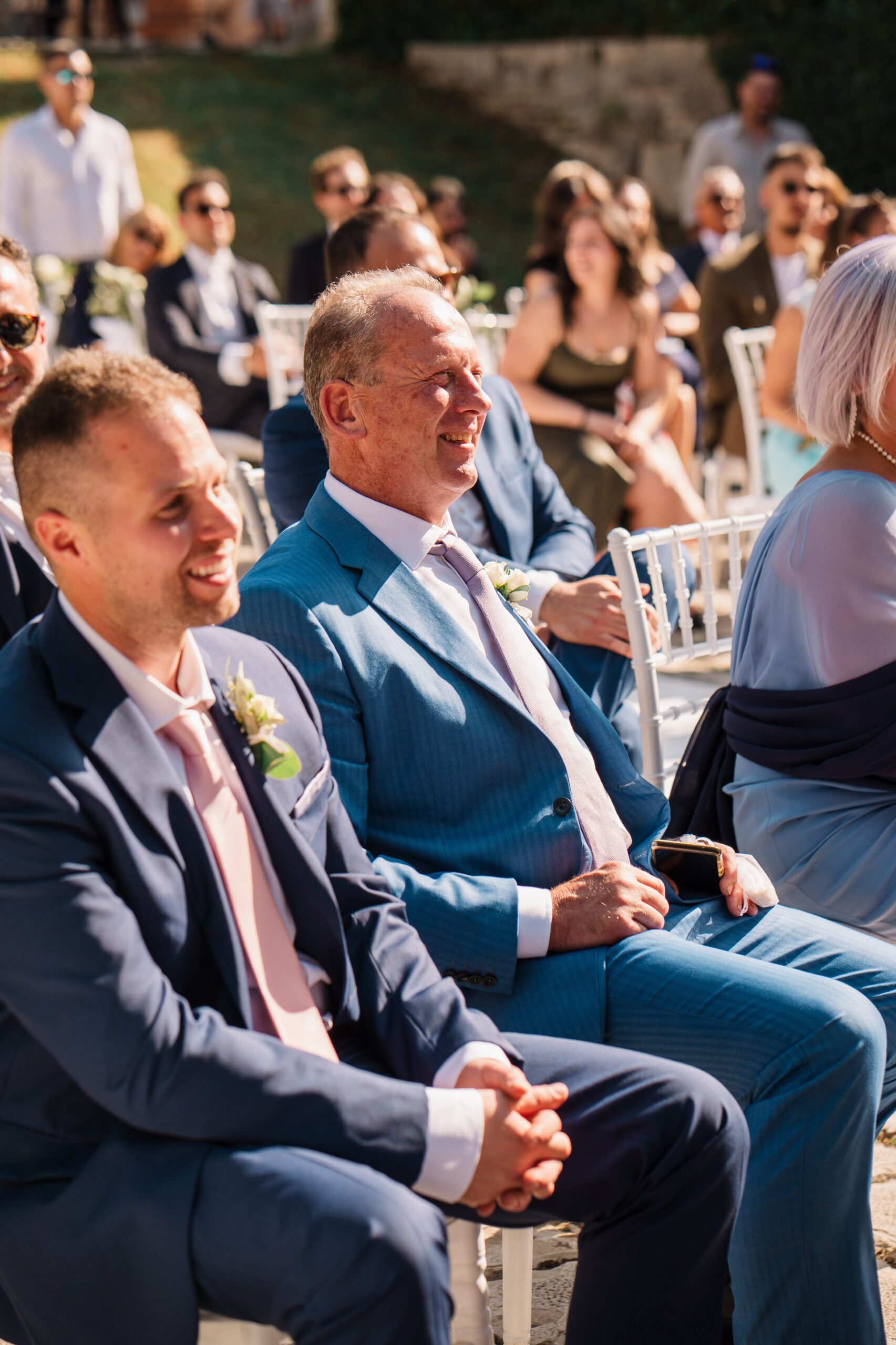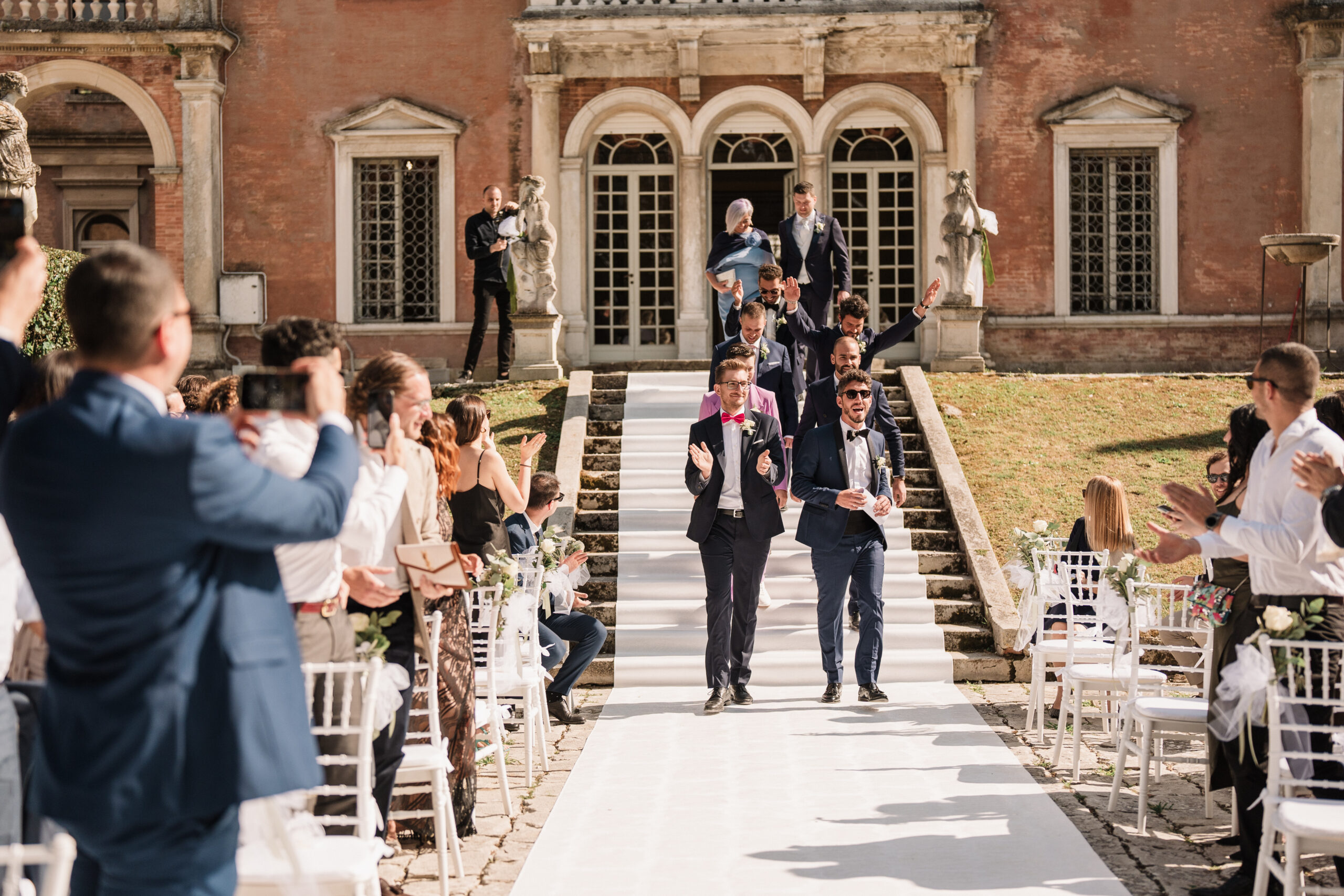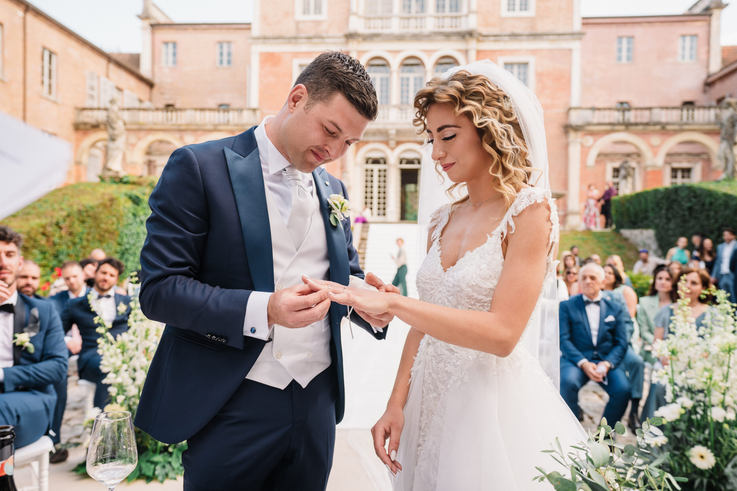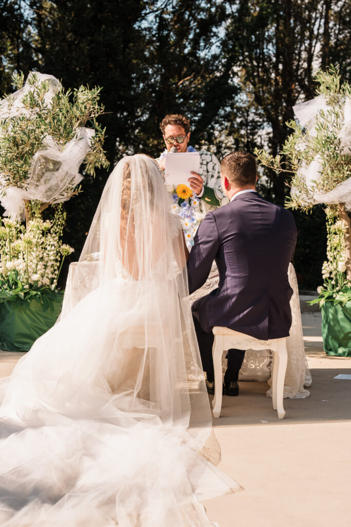 As the evening arrived, the celebration continued with dinner, speeches, and dancing under the lights of the villa — creating an unforgettable Italian wedding experience.