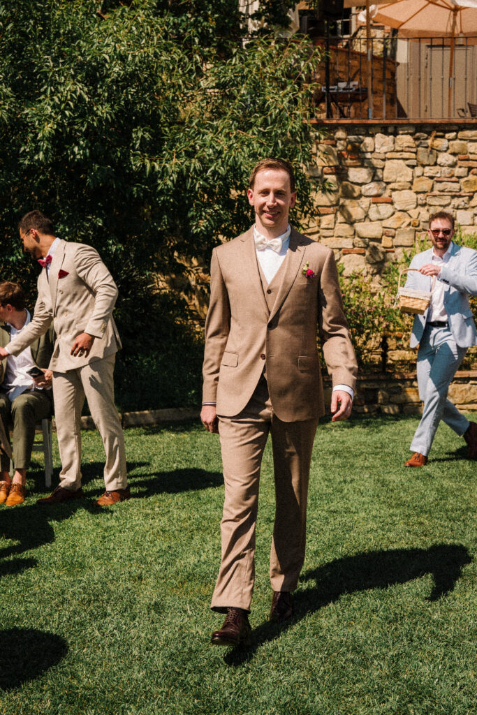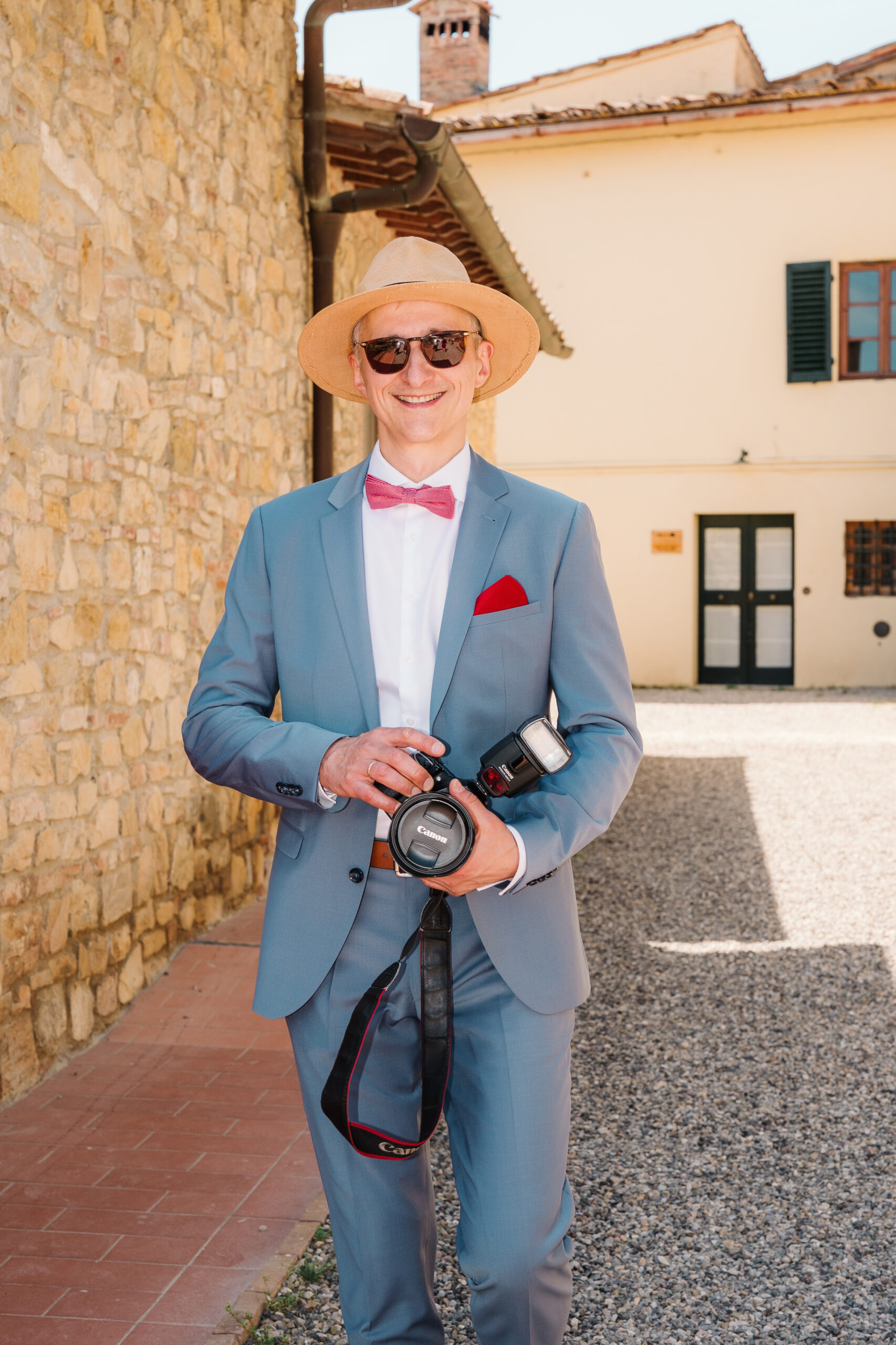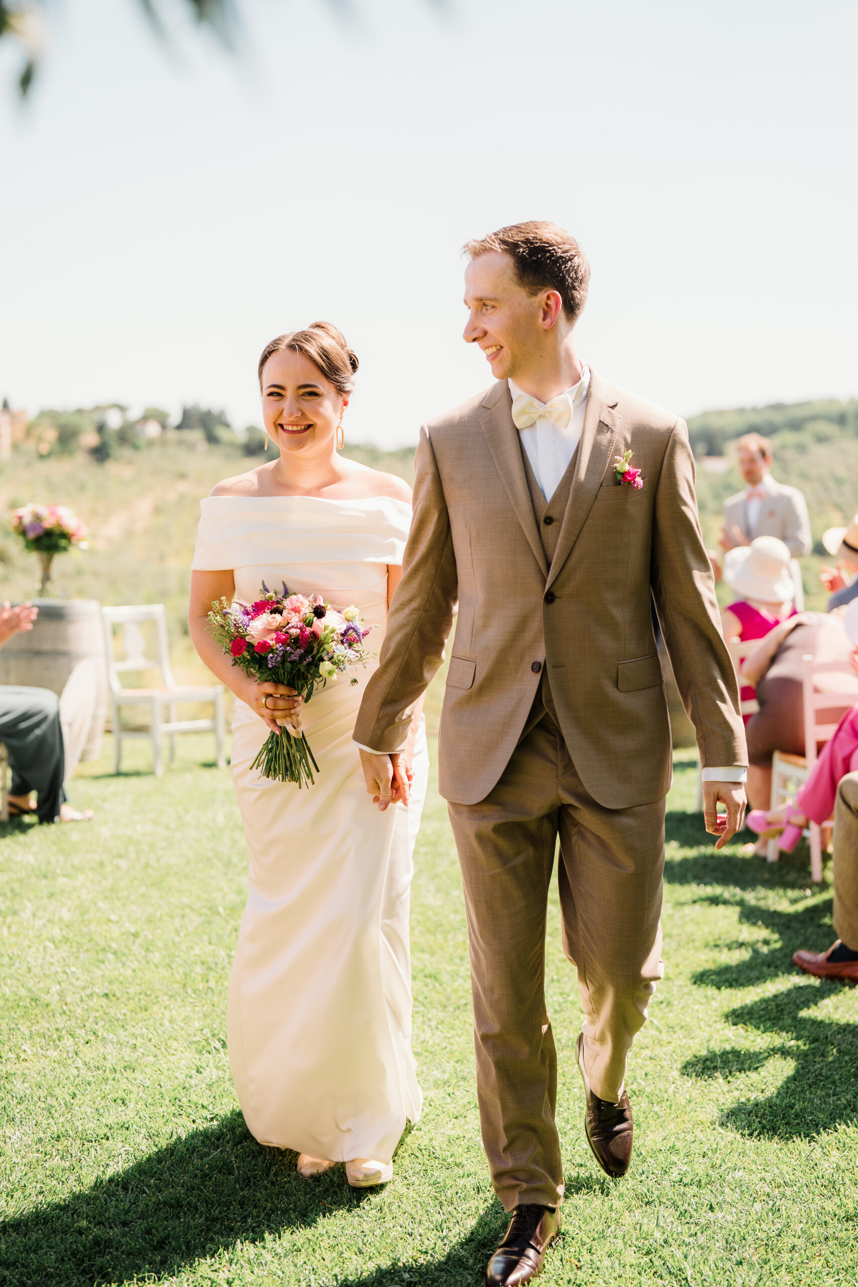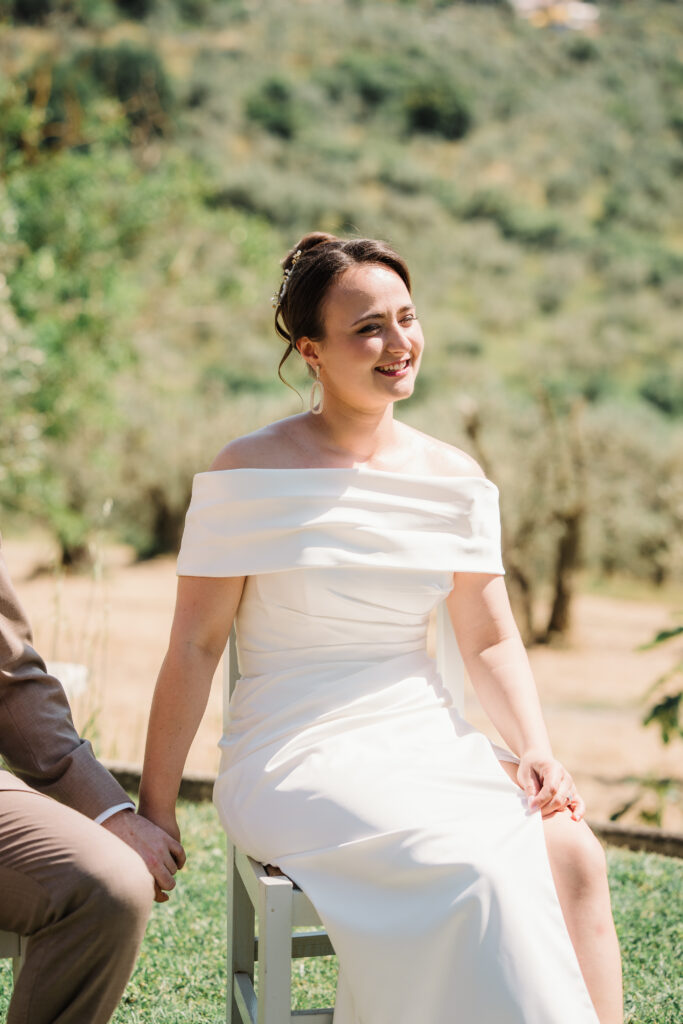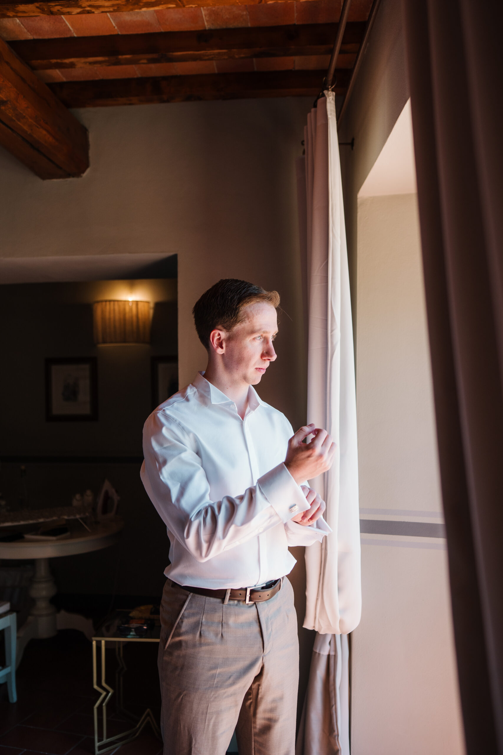 The preparations took place inside the villa, where soft window light created elegant and intimate portraits. The outdoor ceremony, set against the Tuscan countryside, was authentic and full of emotion as Valeria walked towards Johannes.