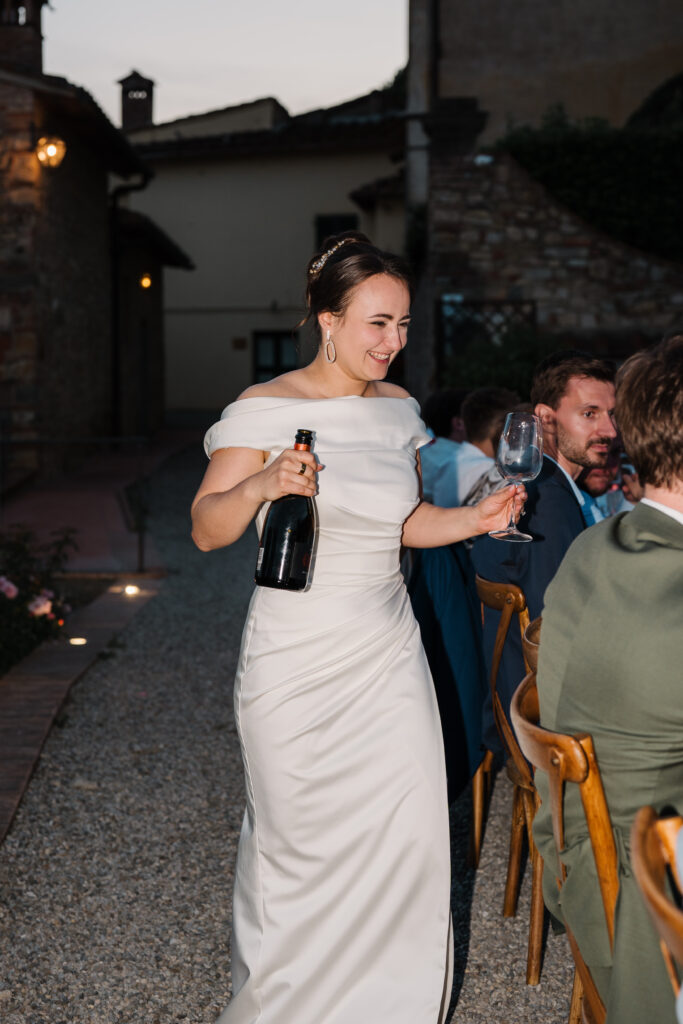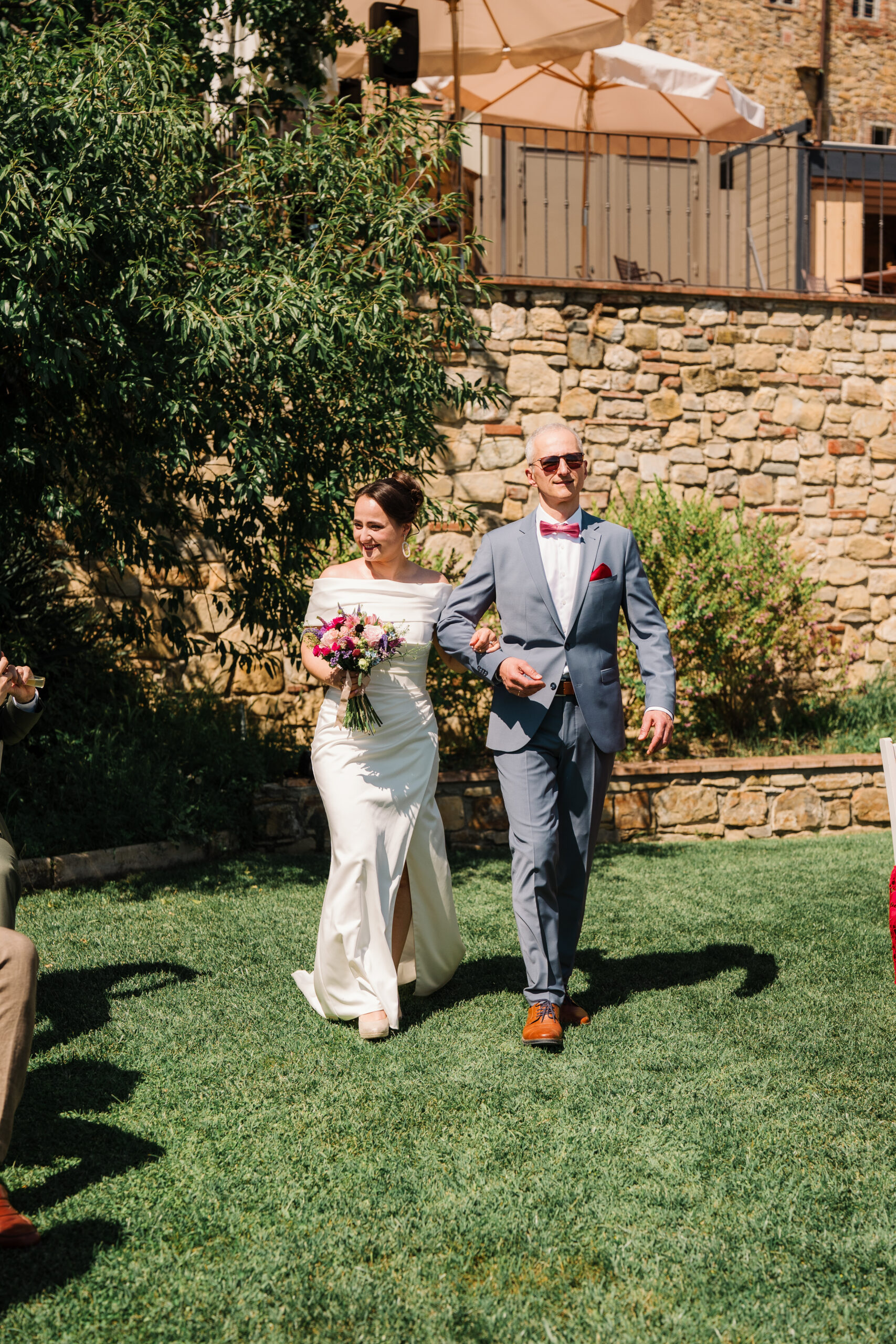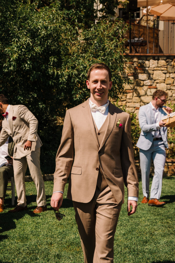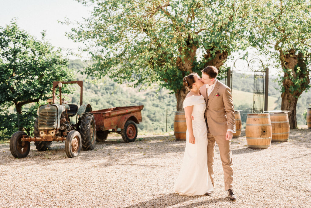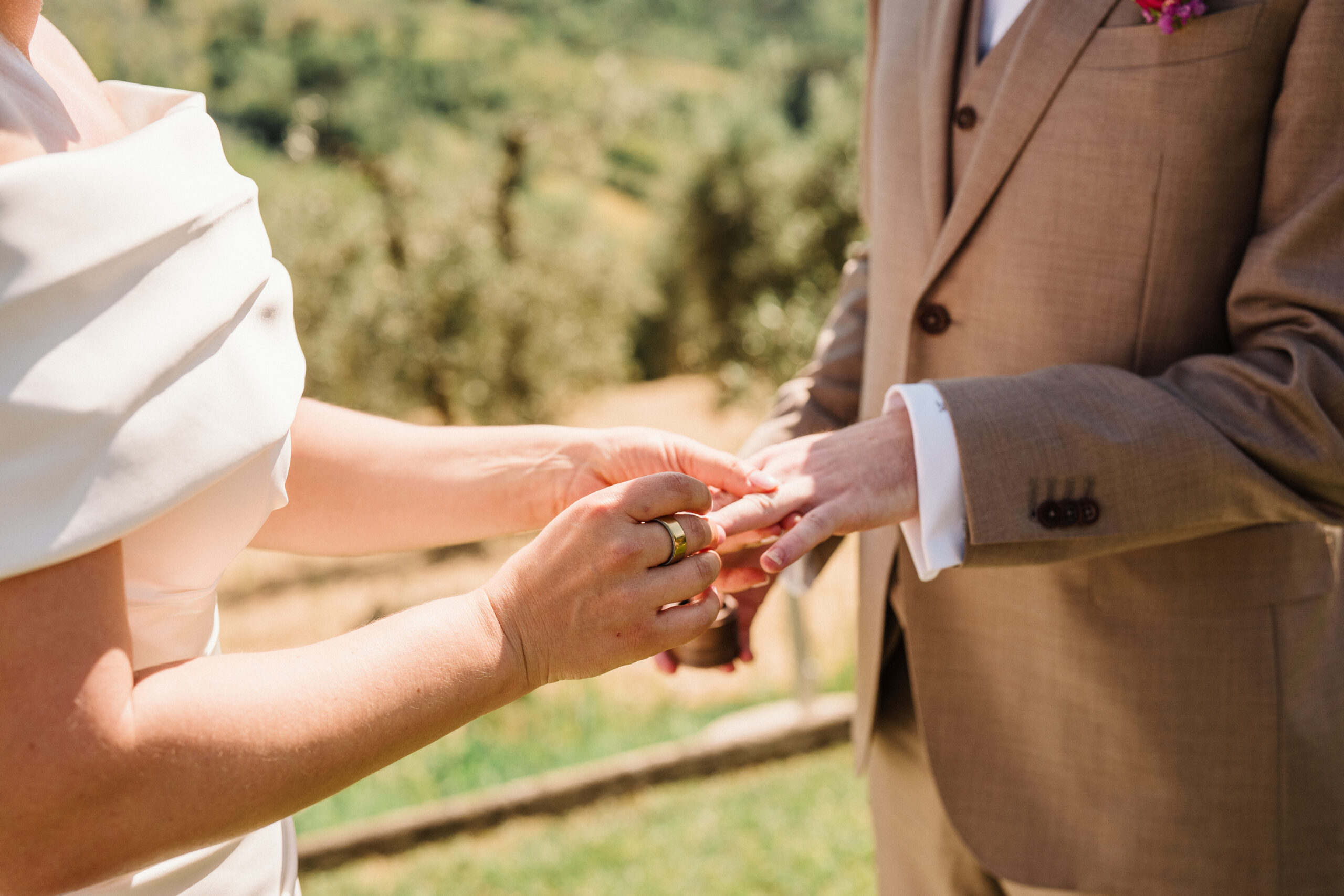 The preparations took place inside the villa, where soft window light created elegant and intimate portraits. The outdoor ceremony, set against the Tuscan countryside, was authentic and full of emotion as Valeria walked towards Johannes.