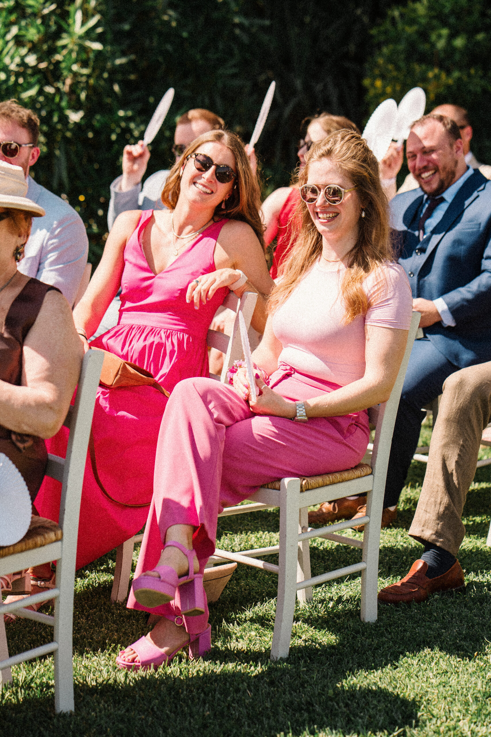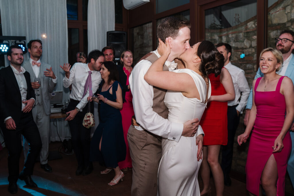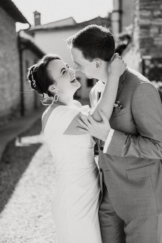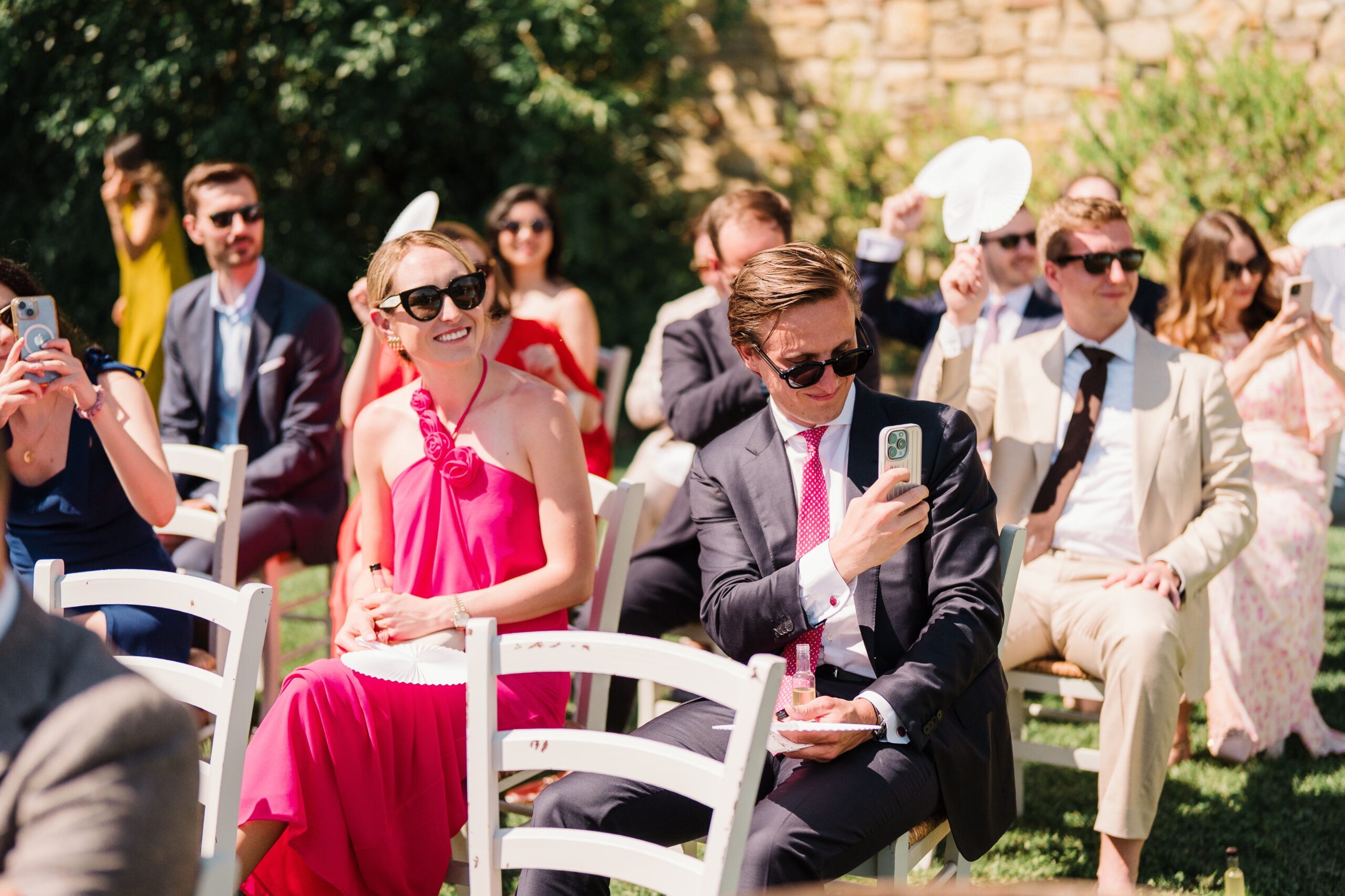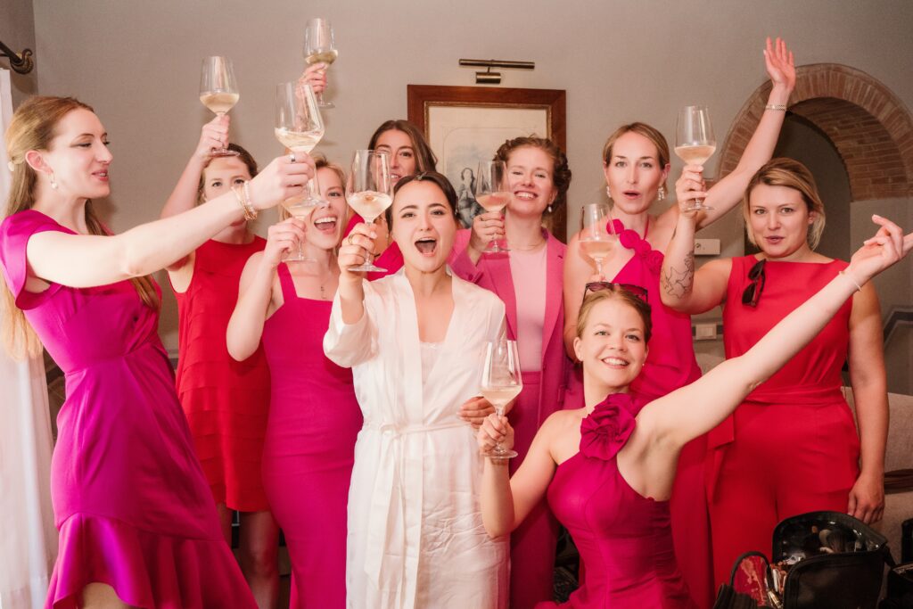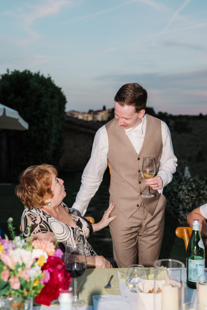 The preparations took place inside the villa, where soft window light created elegant and intimate portraits. The outdoor ceremony, set against the Tuscan countryside, was authentic and full of emotion as Valeria walked towards Johannes.