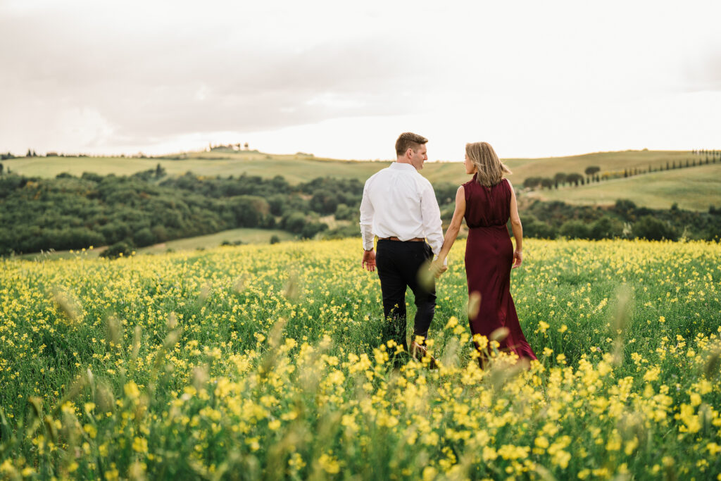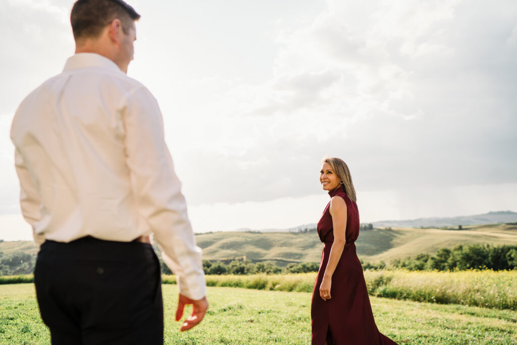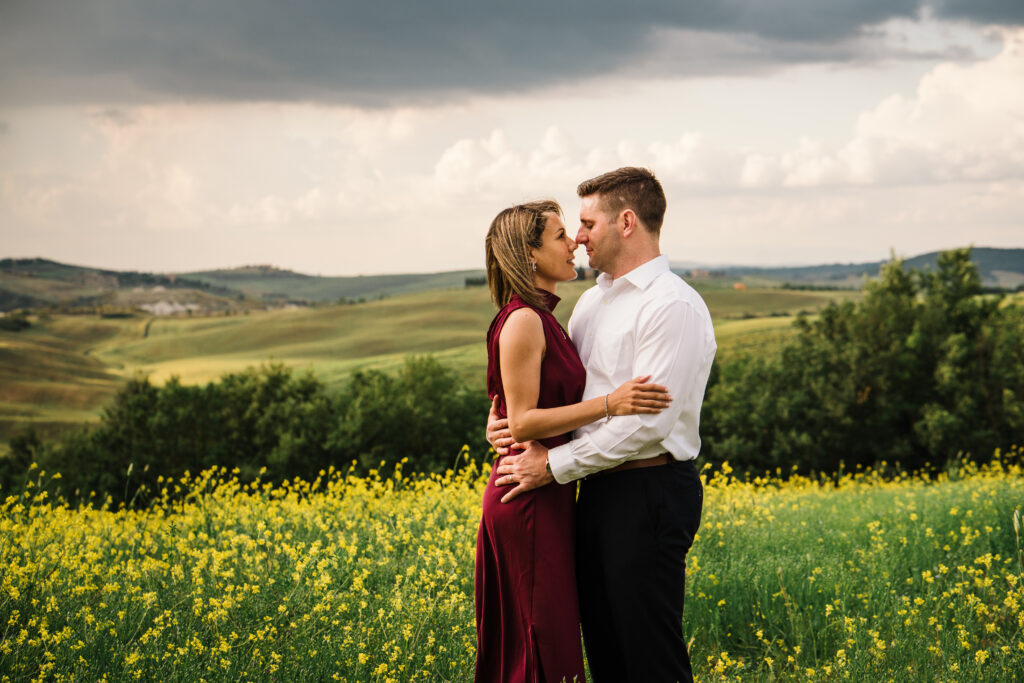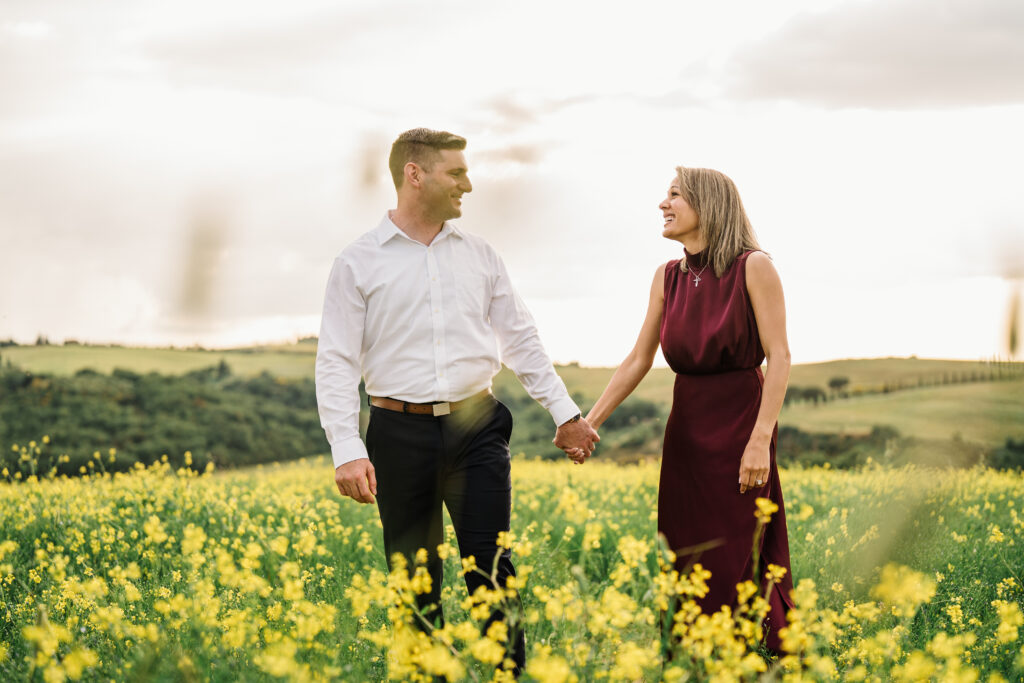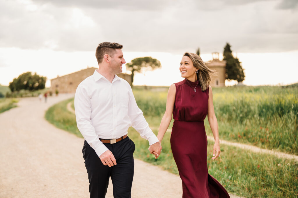 Valeria and Kevin chose the breathtaking Val d’Orcia in Tuscany for their engagement session, and it could not have been a more perfect setting.