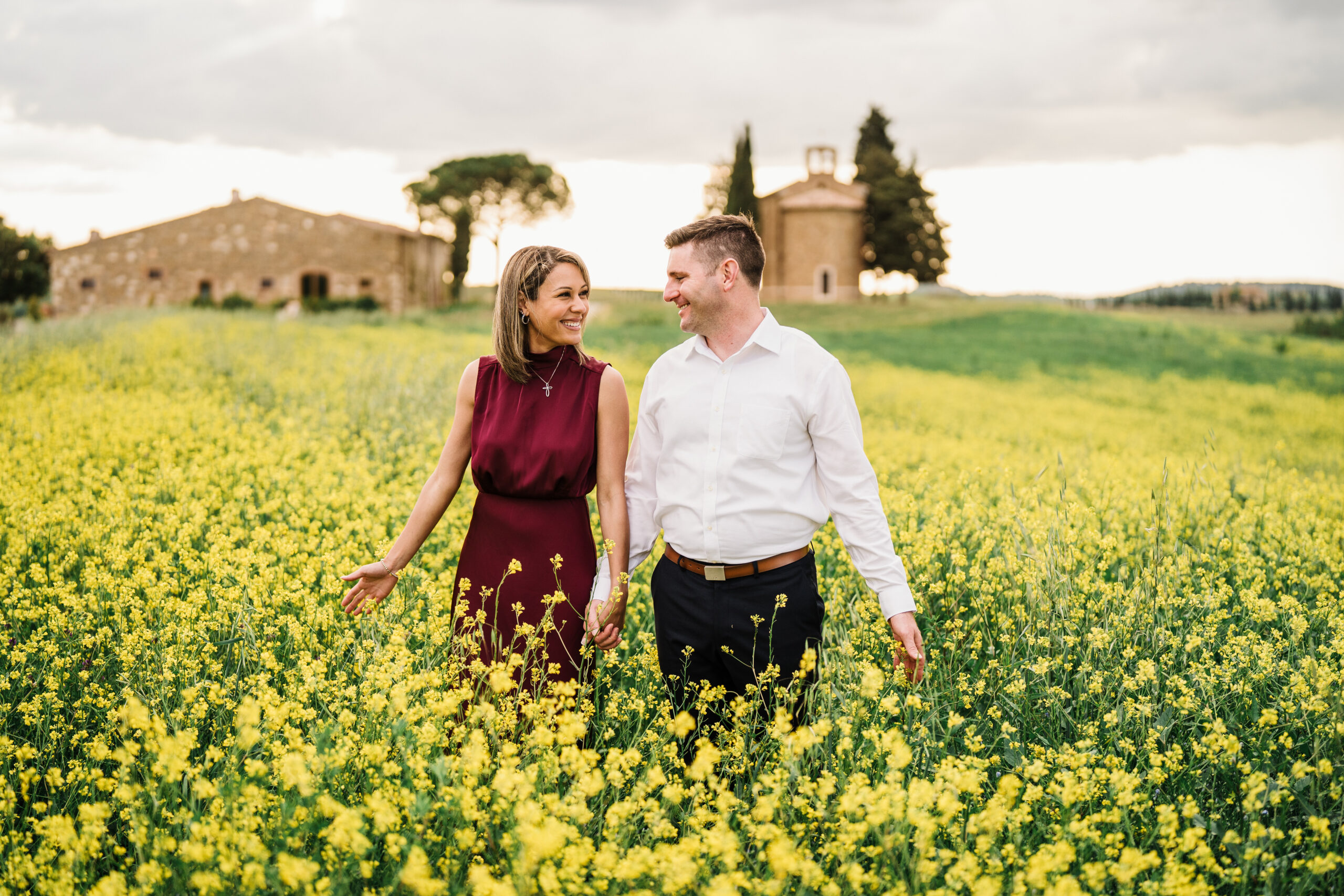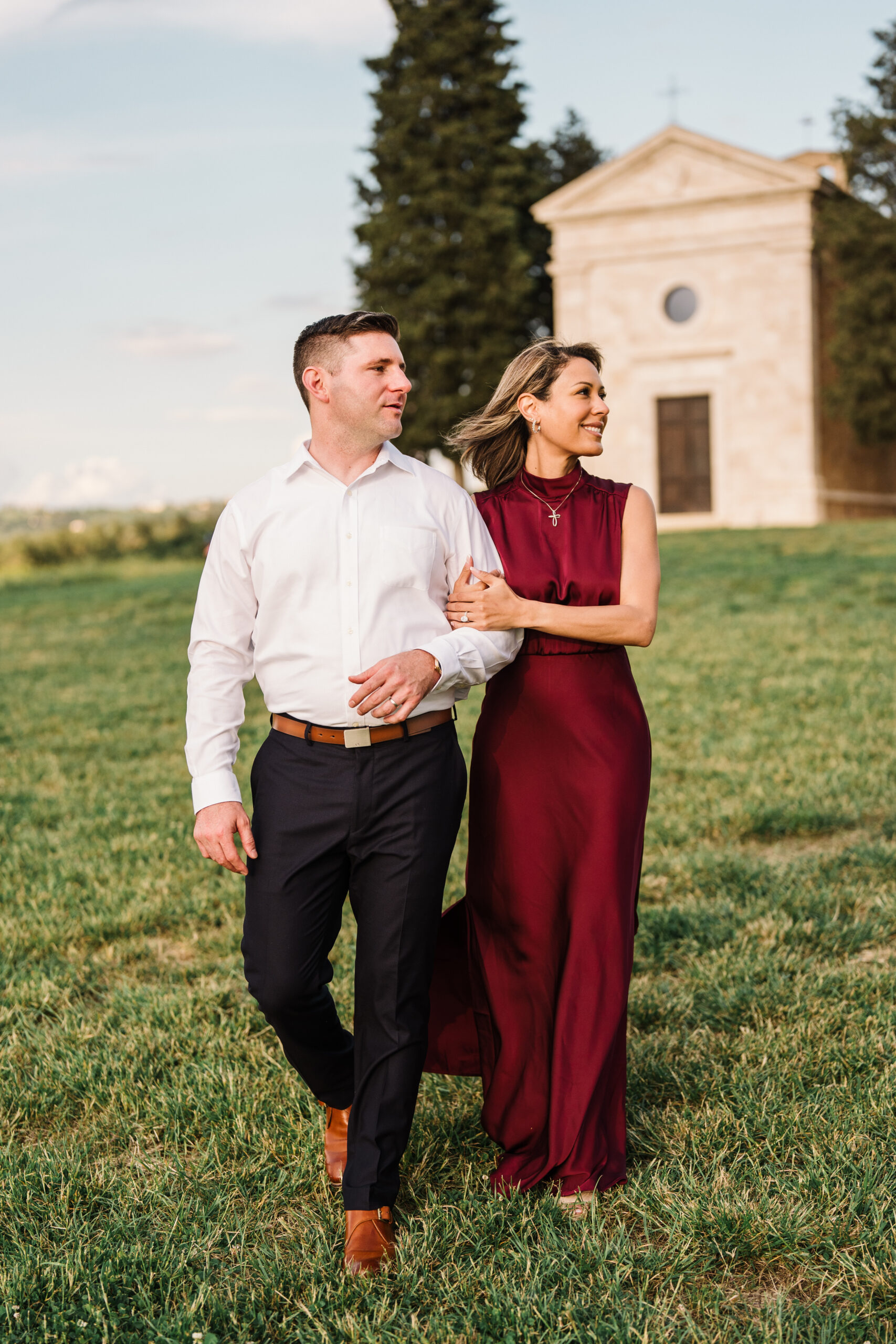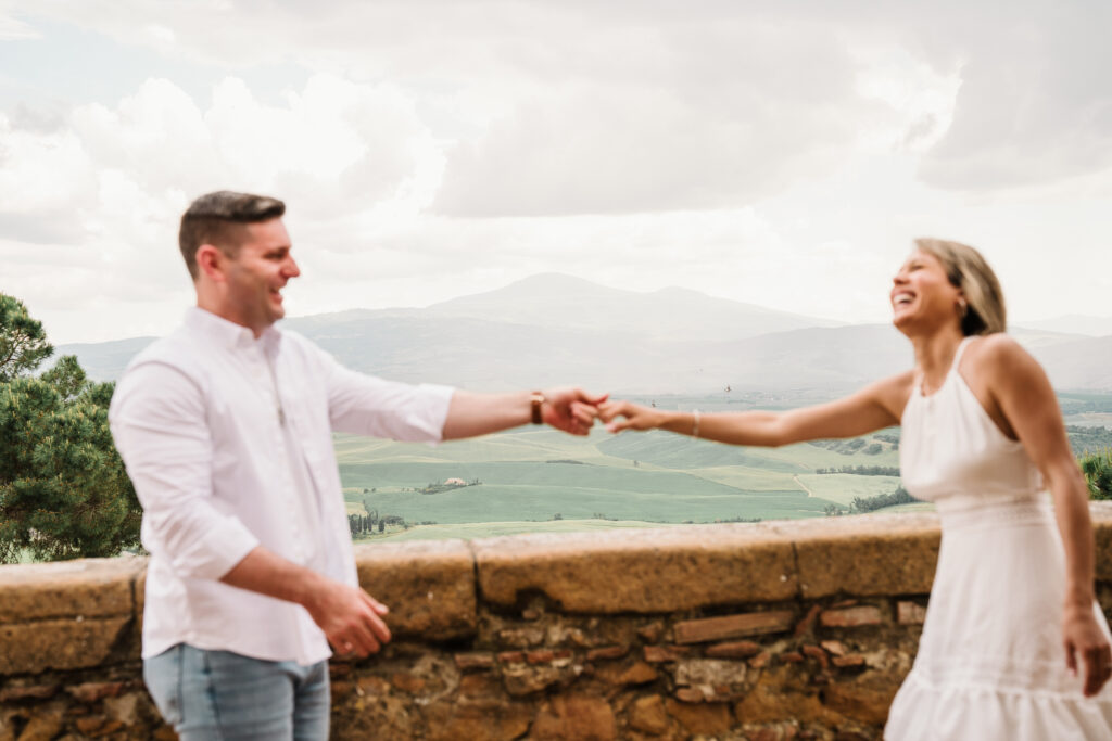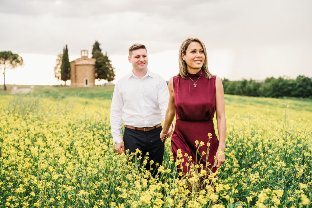 Valeria and Kevin chose the breathtaking Val d’Orcia in Tuscany for their engagement session, and it could not have been a more perfect setting.