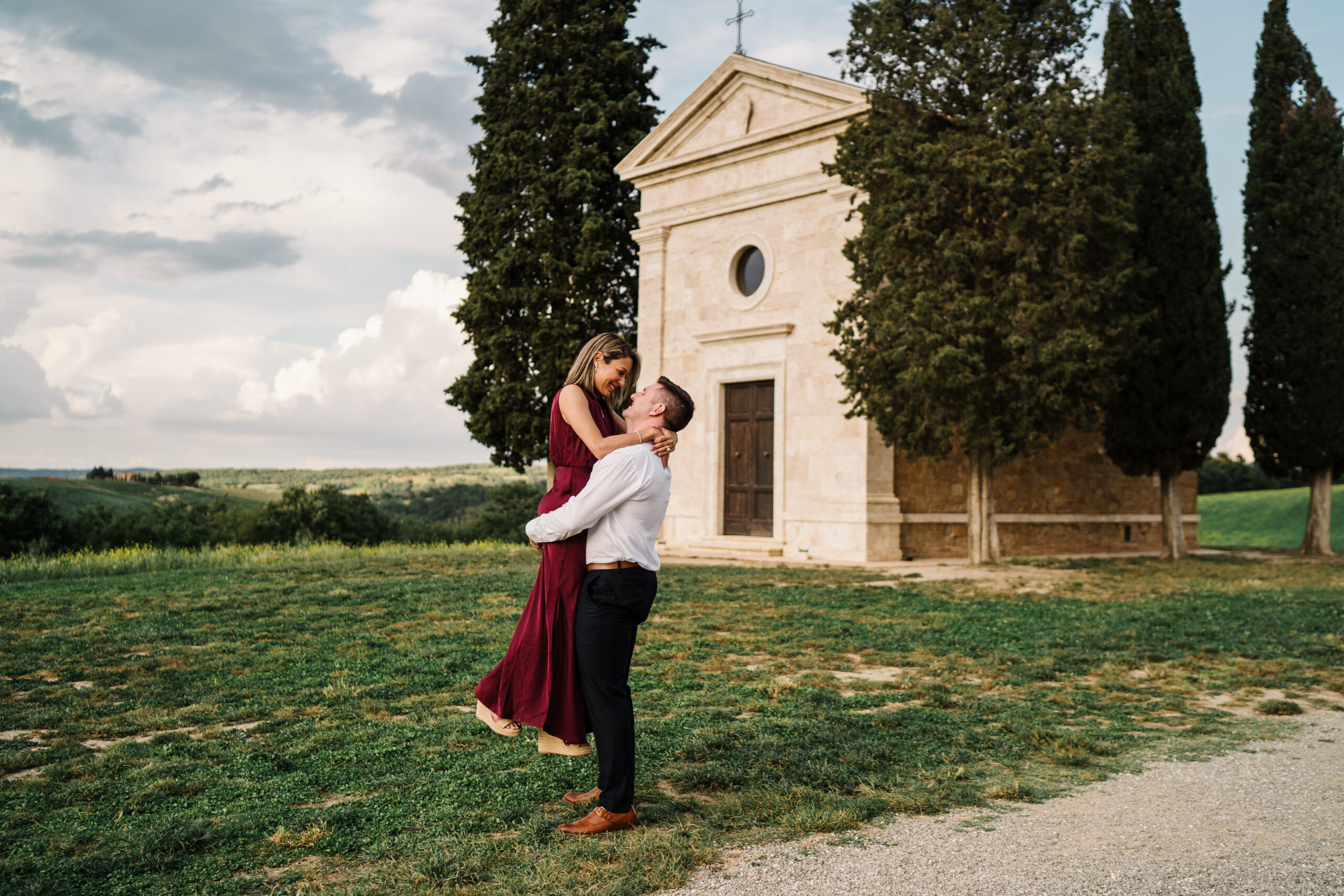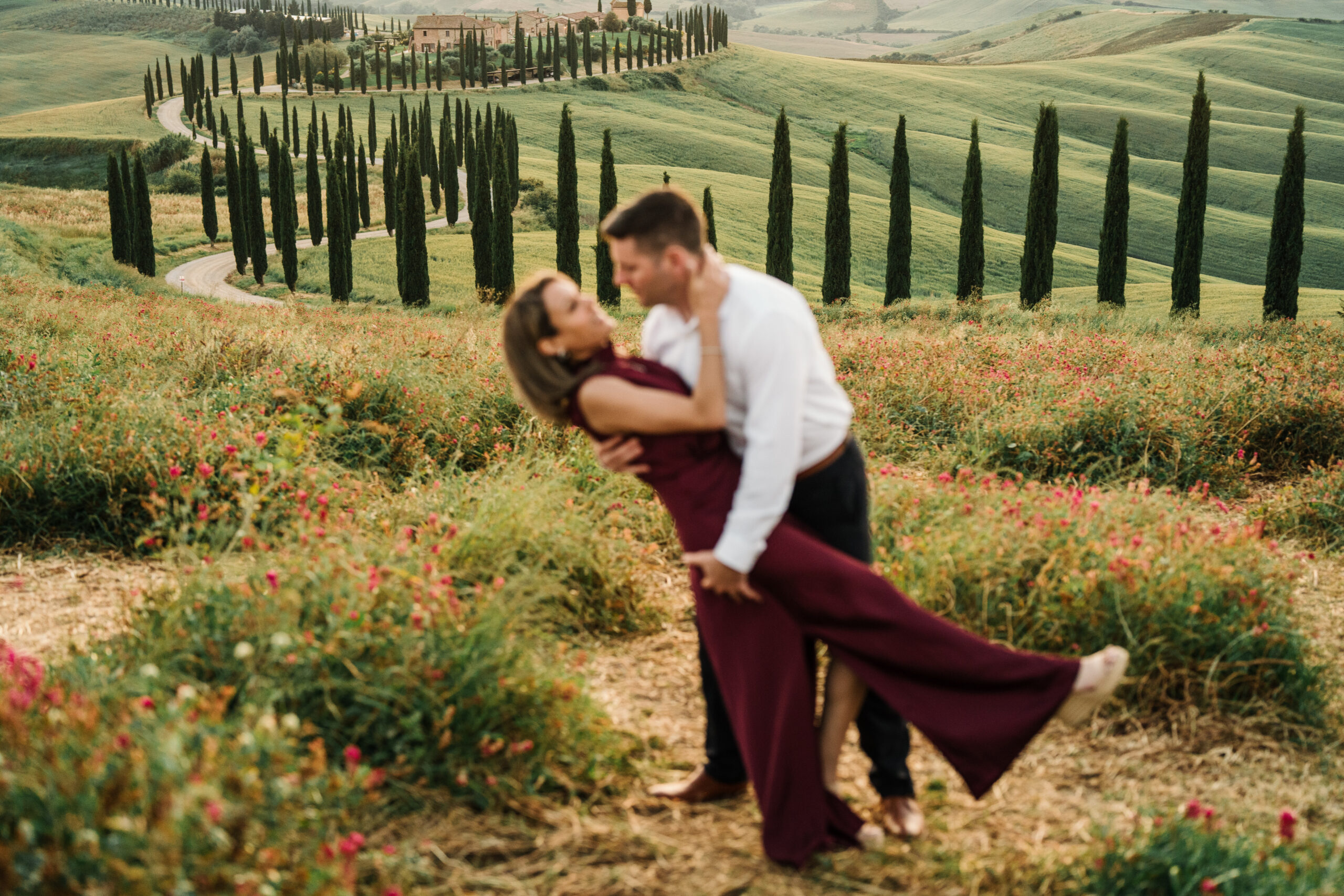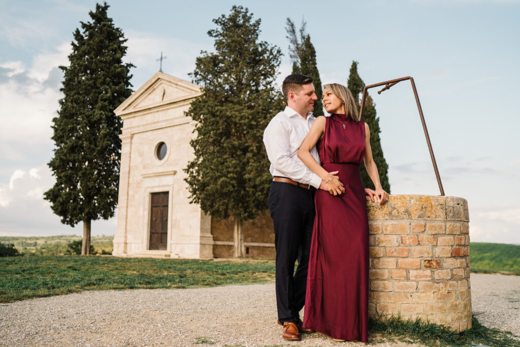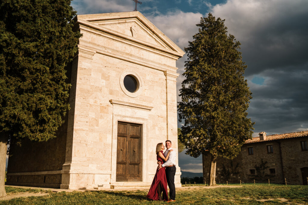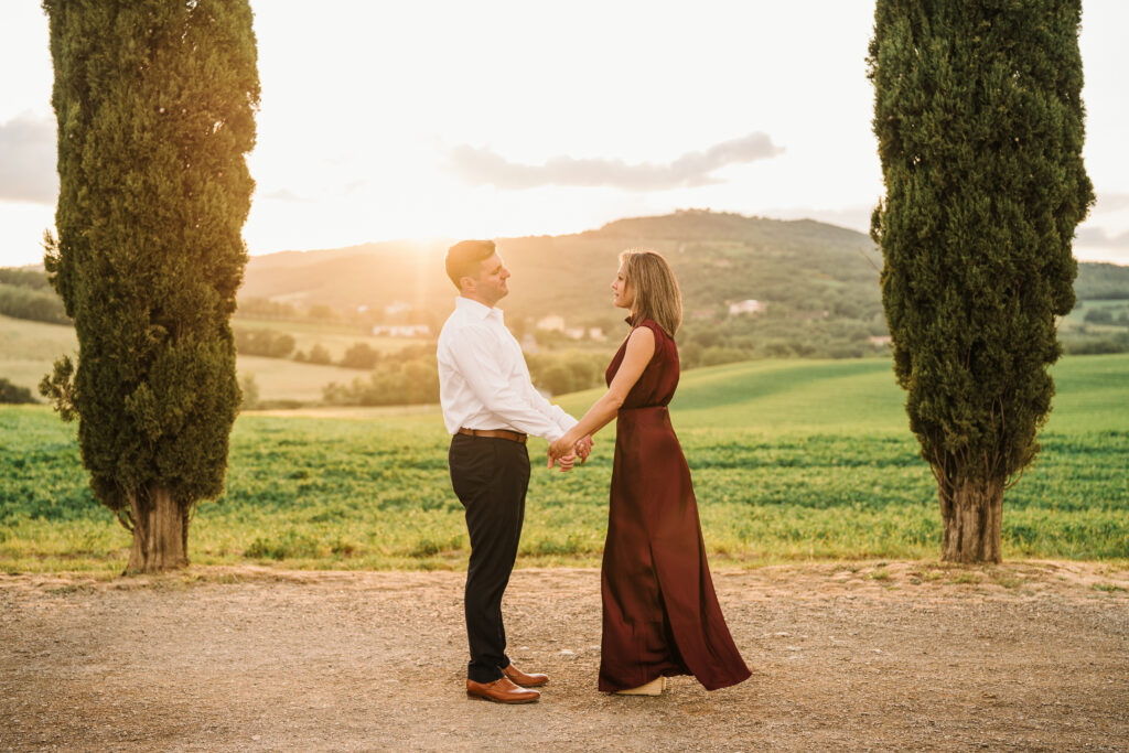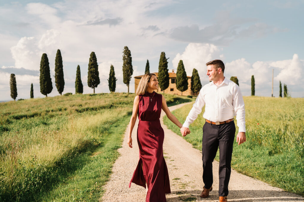 Known worldwide for its rolling hills, winding cypress roads, and timeless stone villages, Val d’Orcia is one of the most iconic places for destination weddings and engagement photos in Italy.
